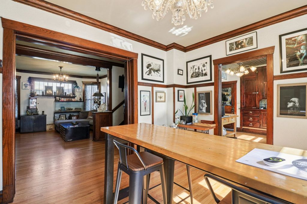 Step back in time with this beautifully preserved piece of Woodstock history! Built in 1902, this 5-bedroom, 1-bath home is among the earliest in town and proudly holds historical status. The residence showcases timeless craftsmanship with original woodwork, hardwood floors, pocket doors, built-in cabinetry, and a striking tin ceiling. Modern comforts include a newer furnace, A/C, and water heater. Relax on the inviting front porch with its stunning street-facing windows, or enjoy outdoor living on the spacious deck overlooking the large lot. Plenty of closet space and potential to add an additional bath and laundry upstairs. Ideally located near the charming Woodstock Square, METRA, dining, and shopping!