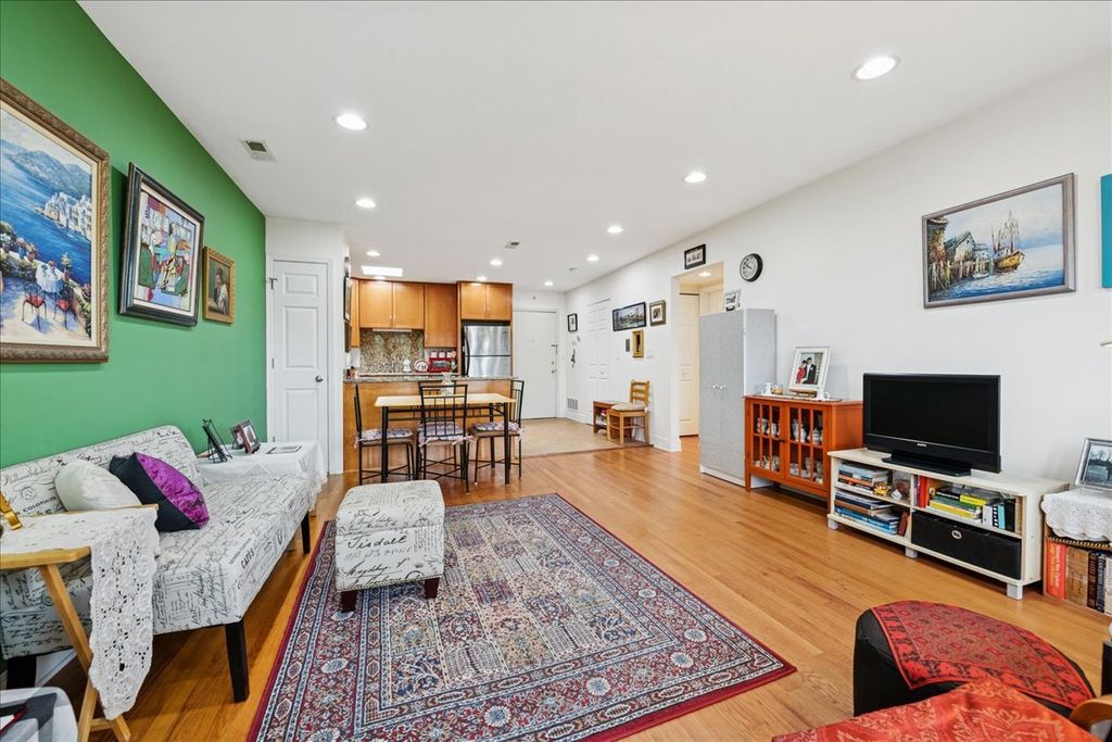 Welcome to 5001 Madison Street #3A - a bright, beautifully maintained top-floor condo in a desirable elevator building in the heart of Skokie. With thoughtful upgrades, a smart open layout, and a prime location steps from everything, this home checks all the boxes for comfortable and convenient living. Step inside and you're immediately welcomed by an open-concept living and kitchen area, where oversized windows frame peaceful park views and invite in natural light all day long. A kitchen skylight adds even more sunshine, creating a cheerful, airy space perfect for both everyday living and entertaining. The stylish kitchen features classic maple cabinetry, durable granite countertops, and sleek stainless steel appliances - a functional and elegant space for home cooks and takeout fans alike. Beautiful hardwood floors run throughout the main living areas, adding warmth and cohesion. The generously sized king-bedroom offers a relaxing retreat with room for furniture, a workspace, or reading nook. The updated bathroom features modern fixtures and finishes, adding to the home's move-in-ready appeal. You'll love the convenience of in-unit laundry, ample closet space, and even dedicated storage in the basement - ideal for seasonal items or outdoor gear. Whether you're starting out or settling in, this home offers room to grow and breathe. Located in one of Skokie's most walkable and vibrant neighborhoods, you're just blocks from the lively downtown district, home to the acclaimed Skokie Public Library, a bustling farmers market, charming local shops, and a wide selection of restaurants and cafes. For nature lovers and weekend adventurers, Emily Oaks Nature Center is just around the corner, offering wooded walking trails and year-round activities to enjoy. This is a rare opportunity to own a lovingly cared-for home in a welcoming community with so much to offer. Whether you're a first-time buyer or simply looking for a fresh start in a walkable, well-connected area, 5001 Madison #3A is ready to welcome you home.