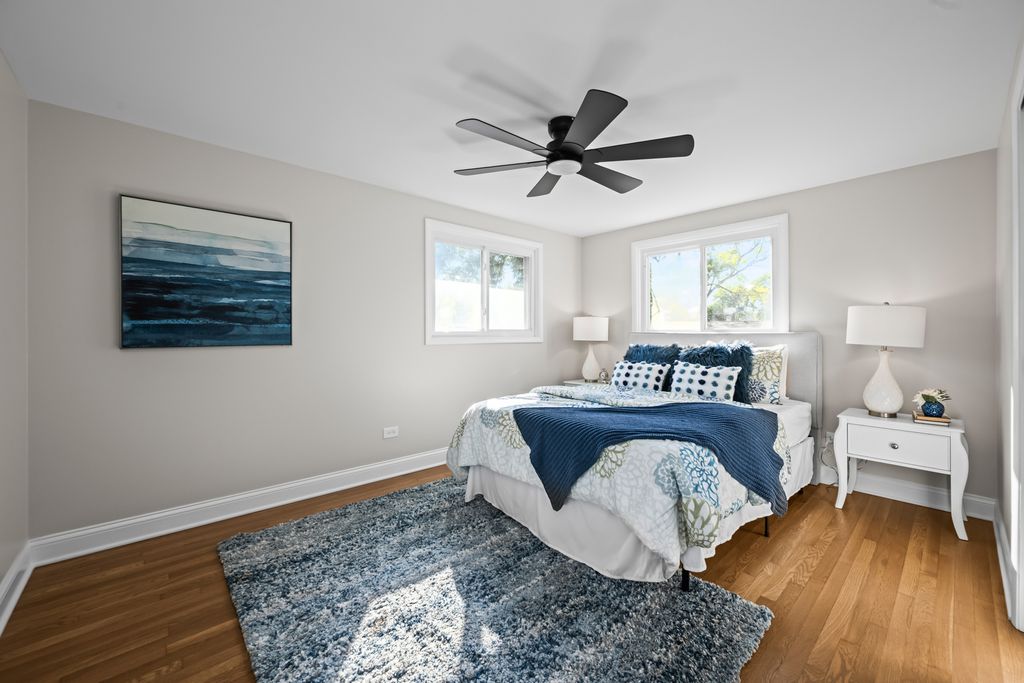 Welcome to the impeccably renovated residence at 1152 Aberdeen Lane, perfectly situated in Mundelein's sought-after Loch Lomond Subdivision. Enjoy exclusive private lake access through the Loch Lomond Association, offering two beautiful beaches ideal for swimming, fishing, kayaking, and community events. This prime location is just minutes from Mundelein High School, Fremont Public Library, Barefoot Bay Waterpark, and the Mundelein Park District's sports fields, combining convenience with recreation. Set on a half-acre lot with a fenced yard, this home provides plenty of outdoor space for play, gardening, or entertaining. Spanning 1,152 square feet, the residence has been completely transformed inside and out with thoughtful updates and high-quality finishes. Step inside to discover new hardwood floors throughout the main living areas, stylish vinyl flooring in the family room, freshly painted interiors and exteriors, and new recessed lighting throughout, creating a bright and modern ambiance. The open-concept kitchen is a chef's dream, featuring all-new stainless steel appliances, soft-close cabinetry, quartz countertops, a built-in pantry, modern backsplash, and a spacious double island-perfect for meal prep, dining, and entertaining. The downstairs half bath has been converted into a full bath, providing added convenience for family and guests. Bathrooms have been fully reimagined for a spa-like experience, including the upstairs bathroom with new porcelain tile flooring, quartz countertops, subway tile, a rainfall shower, and privacy glass door. Additional upgrades include several new energy-efficient windows, a new front door and garage entry door, updated plumbing throughout with new faucets and fixtures, upstairs laundry hookups, and a custom-built entryway with hooks and storage. Modern stair treads and railings add contemporary style, while the new deck and refreshed landscaping create an inviting outdoor retreat. With every detail meticulously updated, this home offers modern comfort, elegant design, and a prime Loch Lomond location-a truly move-in-ready gem.