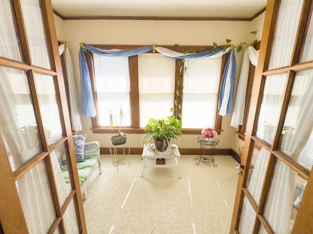 Charming 3-bedroom, 1-bath bungalow full of character and warmth! Step inside from the inviting front porch-or enjoy the comfort of the enclosed porch area, perfect for relaxing year-round. Inside, you'll find tall ceilings, beautiful details, and plenty of natural light that highlight the home's timeless charm. The kitchen features a unique original ice box, adding a touch of history to this well-maintained home. A full basement provides additional storage or potential for extra living space. Outside, enjoy a 1-car detached garage and corner lot ready for your personal touch. This home offers classic style and comfort in a convenient location.