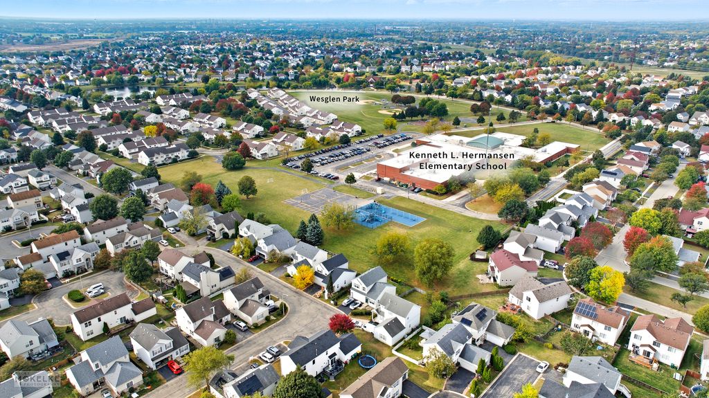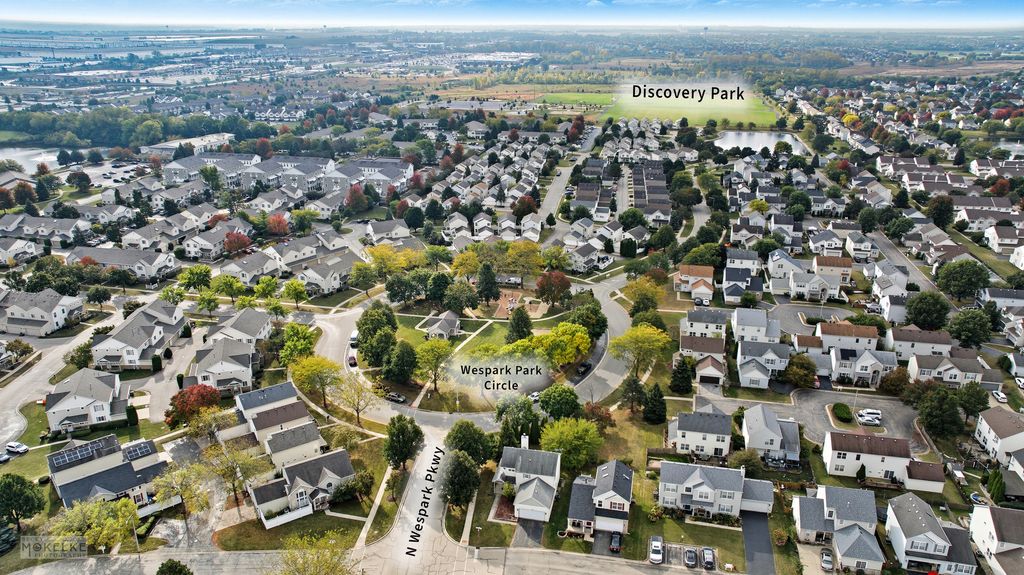 Welcome Home......... This charming residence greets you with a cozy front porch and a grand two-story foyer. Perfectly situated on a corner lot, it features an open floor plan, neutral paint tones, and convenient main-floor laundry. The spacious kitchen opens to the dining area - ideal for entertaining family and friends. Upstairs, you'll find three generously sized bedrooms and 2.1 baths. The primary suite includes a private en suite bath and a large walk-in closet. The finished basement offers a large family room with a fireplace and an expansive storage area. Step outside to a quiet patio - the perfect spot to relax or enjoy a summer barbecue. Located in the desirable Wespark Community, you'll have access to scenic walking trails and beautiful ponds - a wonderful place to call home.