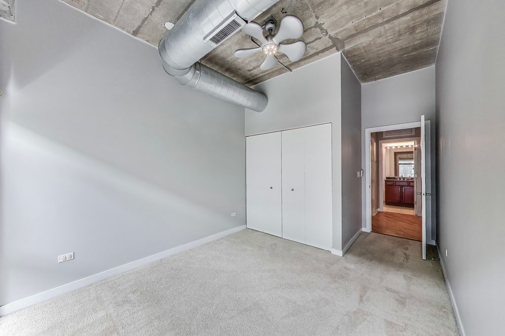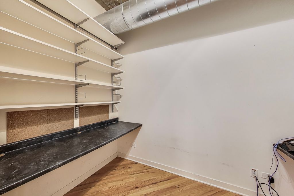 Looking for more space and more privacy? This quiet,1226 sq. ft. condominium has high concrete ceilings and FULLY-ENCLOSED BEDROOMS with a fully-enclosed office! Heated, garage parking is INCLUDED. This designer-improved unit has NEW CARPETING in the bedrooms, diagonal real oak hardwood floors, upgraded appliances -- including a brand new refrigerator -- and subway tile on the backsplash and throughout the kitchen. Elfa Custom Shelving is plentiful in the living/dining area on both sides of the fireplace, in the office and in the closets. There's a TV cut out and a previously installed TV bracket in the living room. The Bose Surround Sound System, with outdoor/balcony speaker, will stay. Both bathrooms are nicely upgraded with a stand-up shower in the primary and a tub in the second. Front-loading W/D in unit. A private balcony overlooks a plush, beautifully landscaped courtyard. DirecTV & Internet are included in the monthly assessment. University Commons is a pet-friendly historical complex converted in 2006 and made up of six buildings in Chicago's University Village neighborhood. In addition to its superior location, pinned between Little Italy and Pilsen, and just 13 blocks from the hot West Loop, the buildings offer a slew of amenities including gyms, recreation rooms, 3-sided decks, an outdoor pool and a 26-seat movie theater for streaming, watching Bears games, etc. Come see us today!