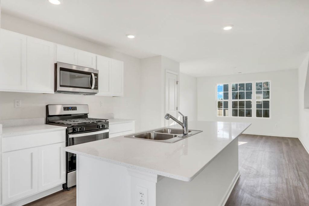 Picture yourself at 1409 Oakfield Lane in Pingree Grove, Illinois, a modern, new townhome in our scenic Cambridge Lakes North community. This middle unit townhome will be ready late winter! Homesite includes a fully sodded yard that is maintained throughout the year as well as snow removal in the winter. This Garfield townhome is a captivating open floor plan with over 1,700 square feet of living space which includes 3 bedrooms, 2.5 baths and a finished flex space. As soon as you step inside from the garage, you'll be greeted by a finished flex space, perfect for an office or playroom. Walking up the stairs, you will find this home's open concept main level living space centered around a large kitchen island. The expansive kitchen overlooks both the front dining and back great room areas, making it the ideal space to entertain. Additionally, your kitchen features designer cabinetry, quartz countertops, stainless-steel appliances, and pantry. Arriving at the top floor, you'll find our 3 bedrooms. Enjoy a spacious primary bedroom suite which includes a large walk-in closet lit up by its own private bathroom with dual sinks and a walk-in shower. The rest of the upper level features a laundry room, secondary bedrooms with a full second bath and linen closet. You'll find luxury vinyl plank flooring throughout the main level kitchen and dining, bathrooms, and laundry. Impressive innovative ERV furnace system, Rheia ductwork delivery system and tankless water heater round out the amazing features this home has to offer! All Chicago homes include our America's Smart Home Technology, featuring a smart video doorbell, smart Honeywell thermostat, smart door lock, Deako smart light switches and more. Photos and model photos are of similar home. Actual home built may vary.
