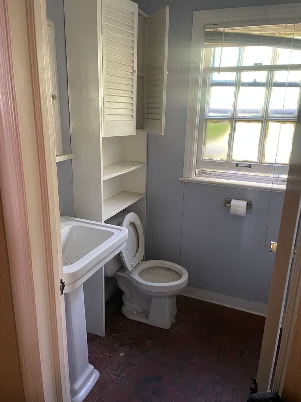 All-brick 2 bed, 1 bath Cape Cod with original hardwood floors, spacious living room, and dining area off the kitchen. Home needs work, but has great potential. Sold AS-IS with all contents included.