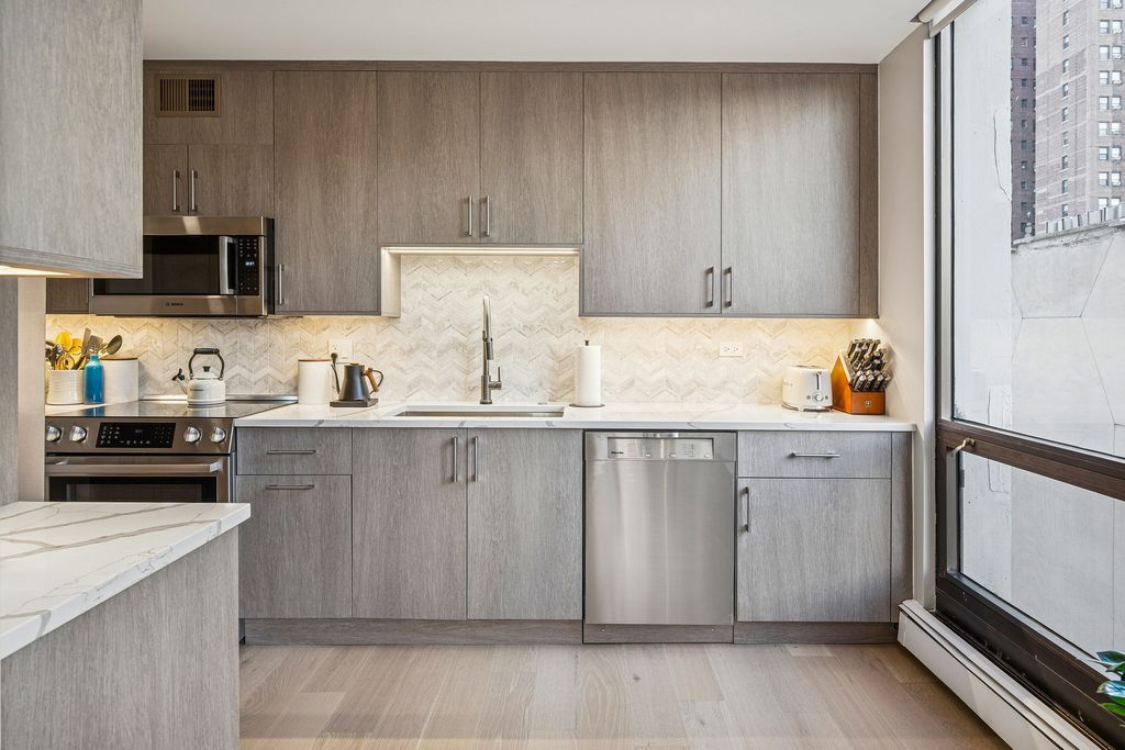 Stunning, Modern Renovation in Prime Gold Coast Location! This beautifully remodeled 3-bedroom, 2-bath corner residence offers 1,800 sq ft of sophisticated living at the prestigious 100 E Bellevue. Enjoy a bright feeling from floor-to-ceiling windows outfitted with custom electronic shades. The spacious semi-open concept layout seamlessly connects the kitchen, living, dining, and den areas; perfect for today's lifestyle. The designer kitchen is a showstopper, featuring sleek quartz countertops, custom cabinetry, and high-end stainless steel appliances. Both bathrooms have been fully re-imagined with premium fixtures and contemporary finishes. The expansive primary suite boasts two generous closets and an en suite bath. The second bedroom and 3rd bedroom/office/den are equally spacious and versatile; ideal for guests, a home office, or additional living space. The 3rd bedroom features a wall of custom built-ins with murphy bed. Located in a full-amenity building with 24-hour door staff, rooftop pool and sundeck, fitness center, party room, and private storage. Proximity to Oak Street, Michigan Avenue, premier dining, shopping, transit, and the lakefront; this is modern Gold Coast living at its finest!