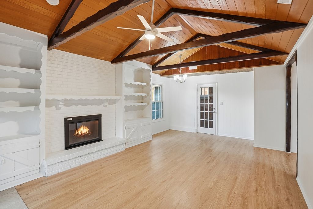 This beautifully renovated 3-bedroom, 2-bath home combines modern updates with timeless charm. From the moment you arrive, the manicured landscaping and inviting exterior makes a lasting impression. Inside, you'll find new flooring throughout and a brand-new kitchen featuring sleek cabinets, stylish finishes, and plenty of workspace. The family room boasts vaulted ceilings with exposed wood beams and a cozy wood-burning fireplace, creating a warm and welcoming atmosphere. Enjoy additional living space in the spacious living room, perfect for entertaining or relaxing. A separate laundry room adds convenience, while each of the three large bedrooms offers comfort and ample storage. Both bathrooms have been tastefully updated, completing this move-in-ready home that truly has it all. Seller is offering a $5,000 appliance credit. Schedule your viewing today!