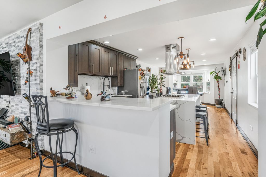 Meticulously restored brick row house on one of the neighborhood's most peaceful, tree-lined streets. This 3-bedroom, 2-bath home combines timeless Chicago character with a thoughtful 2020 renovation that checks every box. The main level flows seamlessly from the chef-inspired kitchen-complete with modern finishes and ample storage-into bright living spaces perfect for entertaining or everyday relaxation. A rare first-floor bedroom and full bath offer flexibility as a guest suite, home office, or private retreat. Upstairs, two generous bedrooms share a second full bathroom, providing ideal separation and privacy. Every inch has been considered: new flooring throughout, fresh paint, updated windows (2019), and recent mechanicals including furnace, roof, and plumbing-move in with total peace of mind. Step outside to your private cement patio, ideal for morning coffee or summer gatherings, plus a detached 2.5-car garage with plenty of storage. This is the rare find that balances classic charm, modern systems, and a location you'll genuinely love coming home to.