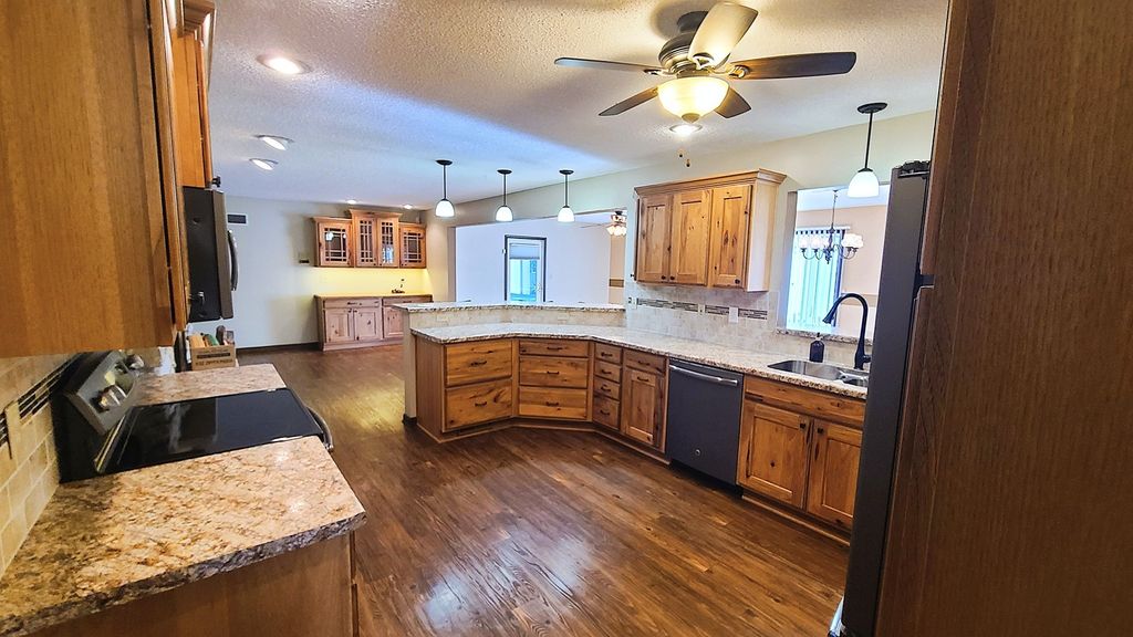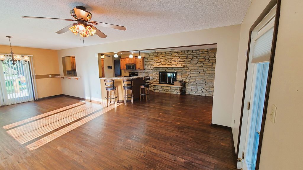 Looking for quiet small town living? This beautiful 3 bedroom 2.5 bath sprawling ranch on over 0.7 of an acre could be just what you're looking for. Situated on a corner lot with beautiful landscaping, and there is both a 2.5 car attached garage as well as an additional detached garage/workshop. Inside, you will fall in love with the beautiful hickory kitchen with see-through wood burning fireplace, and the immense living space with both a formal living room and a large family room. There is even a finished basement with another woodburning fireplace. Home owner has made many improvements over the years to this exceptional 2,800 square foot home- come see for yourself!