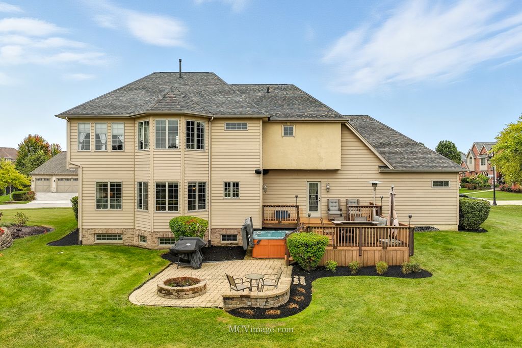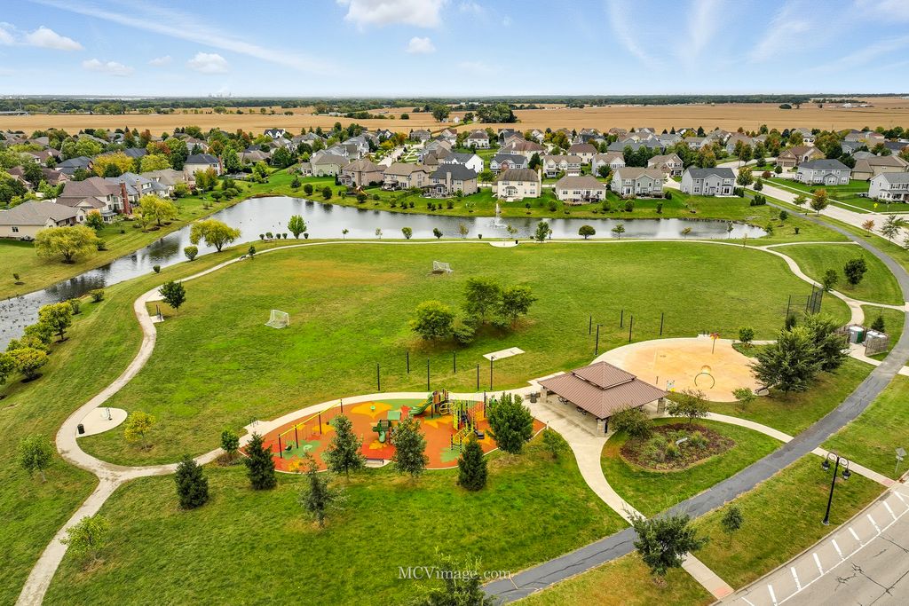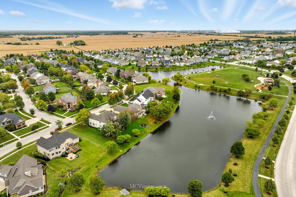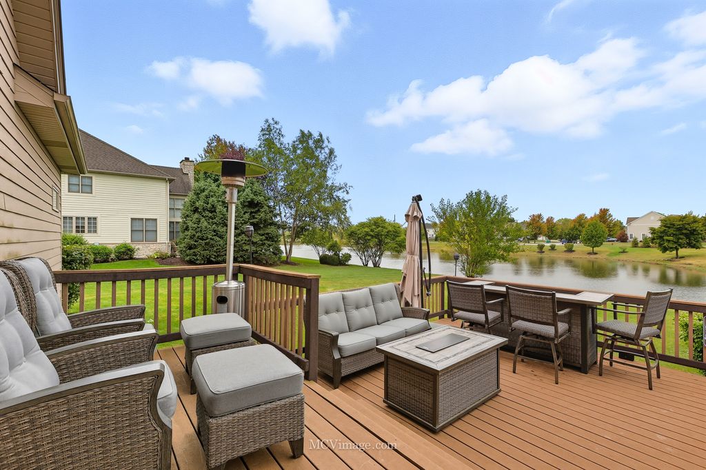 Welcome to this stunning Lake Forrest home, thoughtfully designed with comfort, style, and functionality in mind. From the moment you enter, you'll be captivated by the open floor plan, soaring ceilings, and tall windows that showcase breathtaking views of the peaceful pond beyond. The main level features a beautiful study that can easily convert to a first-floor bedroom with an adjacent full bath. The kitchen is a chef's dream, offering an abundance of 42-inch maple cabinets with decorative side panels, elegant granite countertops, and an open view of the spacious family room. A formal dining room with a custom decorative ceiling and a first-floor laundry complete this level. Upstairs, you'll find three oversized bedrooms, each with a walk-in closet. The luxurious master suite, featuring a walk-in shower with multiple sprayers, a large corner Jacuzzi tub, and a sitting or meditation room. The additional bedrooms share a huge Jack-and-Jill bathroom, and one includes a private reading nook. A large media room offers endless possibilities - perfect for movie nights, a game room, or even a fourth bedroom with its own private half bath. The English basement serves as a fully functional in-law suite, featuring a kitchen, family room, spacious bedroom, and full bath with shower. Large windows allow plenty of natural light, creating a warm and inviting atmosphere. There's also generous storage space throughout the home. Additional updates include surround sound and sprinkler system. There is a new roof. One ac and furnace replaced, and tankless water heater added (2022). Car enthusiasts will love the oversized 3-car garage, with one extended bay (24' x 34') that can fit up to four cars, or three cars plus a motorcycle or boat. A unique staircase from the garage leads directly to the lower level, The backyard has a deck and patio, complete with a hot tub and fire pit. With no neighbors behind you, you can relax in total privacy while listening to the gentle sounds of the pond - a truly serene escape.