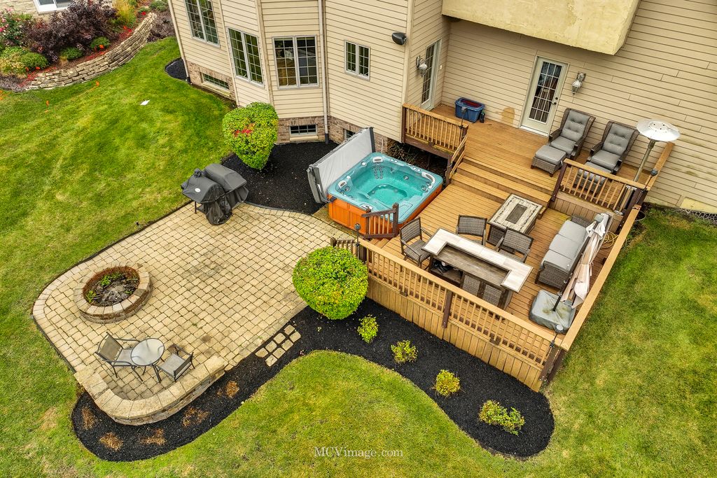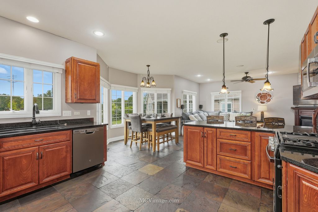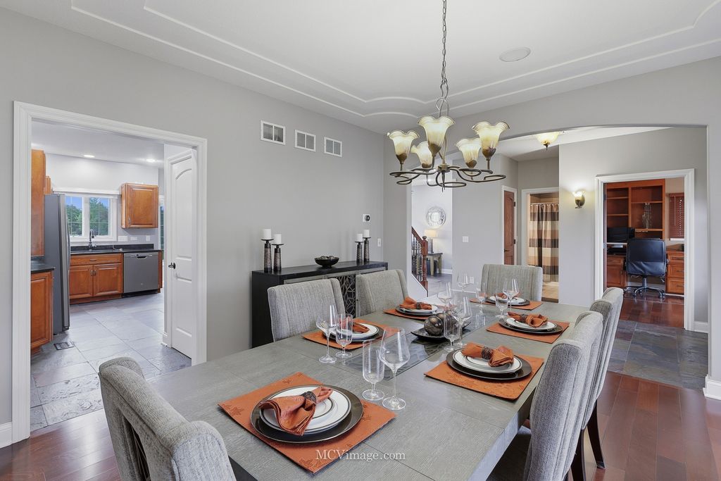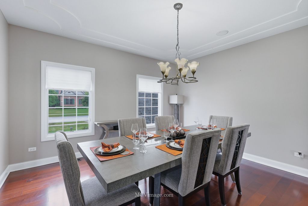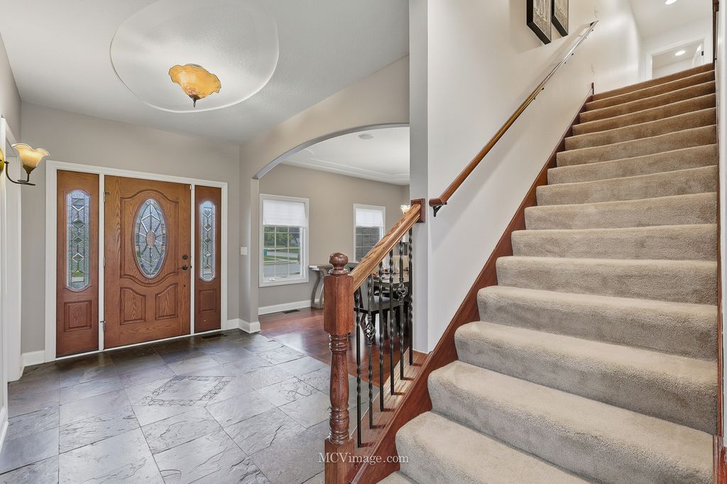 Welcome to this stunning Lake Forrest home, thoughtfully designed with comfort, style, and functionality in mind. From the moment you enter, you'll be captivated by the open floor plan, soaring ceilings, and tall windows that showcase breathtaking views of the peaceful pond beyond. The main level features a beautiful study that can easily convert to a first-floor bedroom with an adjacent full bath. The kitchen is a chef's dream, offering an abundance of 42-inch maple cabinets with decorative side panels, elegant granite countertops, and an open view of the spacious family room. A formal dining room with a custom decorative ceiling and a first-floor laundry complete this level. Upstairs, you'll find three oversized bedrooms, each with a walk-in closet. The luxurious master suite, featuring a walk-in shower with multiple sprayers, a large corner Jacuzzi tub, and a sitting or meditation room. The additional bedrooms share a huge Jack-and-Jill bathroom, and one includes a private reading nook. A large media room offers endless possibilities - perfect for movie nights, a game room, or even a fourth bedroom with its own private half bath. The English basement serves as a fully functional in-law suite, featuring a kitchen, family room, spacious bedroom, and full bath with shower. Large windows allow plenty of natural light, creating a warm and inviting atmosphere. There's also generous storage space throughout the home. Additional updates include surround sound and sprinkler system. There is a new roof. One ac and furnace replaced, and tankless water heater added (2022). Car enthusiasts will love the oversized 3-car garage, with one extended bay (24' x 34') that can fit up to four cars, or three cars plus a motorcycle or boat. A unique staircase from the garage leads directly to the lower level, The backyard has a deck and patio, complete with a hot tub and fire pit. With no neighbors behind you, you can relax in total privacy while listening to the gentle sounds of the pond - a truly serene escape.