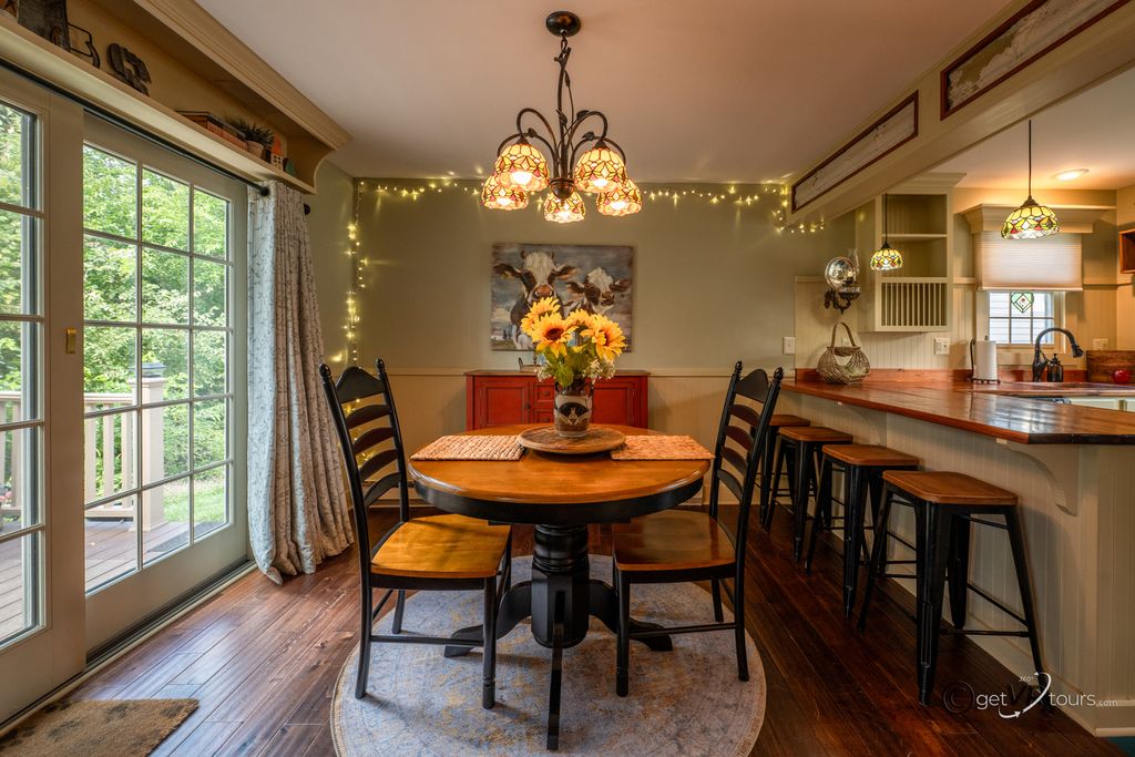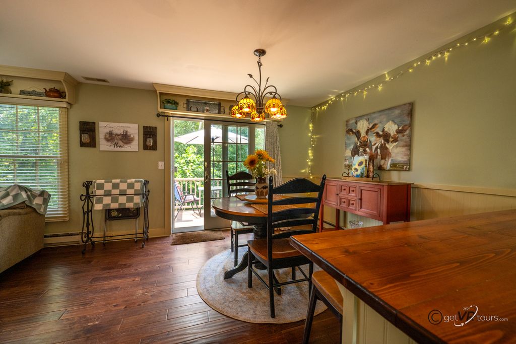 Welcome to Settlement Cottage! Make this your weekend getaway or an ideal short-term rental opportunity. With strong rental potential, this property offers an excellent chance to cut ownership costs while enjoying a relaxing retreat. Nestled between the scenic North and South Golf Courses in The Galena Territory, this charming 2-bedroom, 2-bath cottage blends rustic character with modern updates for the perfect escape. The inviting living area features a wood-burning fireplace, custom built-in bookshelves, and plenty of natural light. The dining room opens to a newly updated kitchen with a spacious breakfast bar, ample storage, and true cottage-style warmth. A full bath with a copper basin sink completes the main level. Upstairs offers two spacious bedrooms with fresh paint and new carpet. The primary suite features a large vanity with hammered copper sink, abundant storage, and a full bath. The secondary bedroom includes laundry for added convenience. Step outside to your private deck-perfect for morning coffee, grilling, or relaxing with wooded views. Recent updates: new windows, sliding door, front door, screen door, exterior paint, and refreshed landscaping. With exterior maintenance handled by the HOA, you'll enjoy the ease of low-maintenance living with the privacy and serenity of your own Galena Territory cottage.