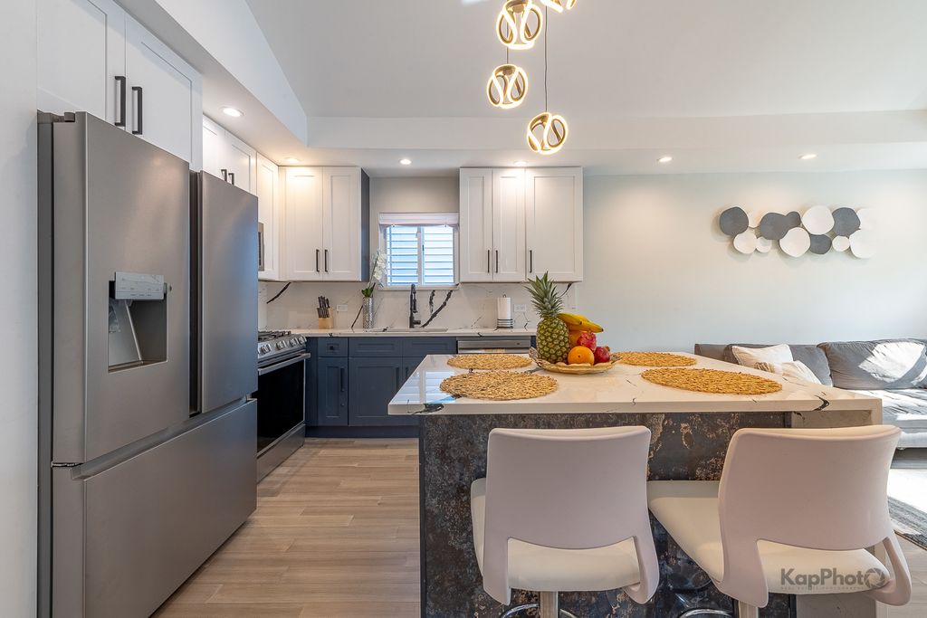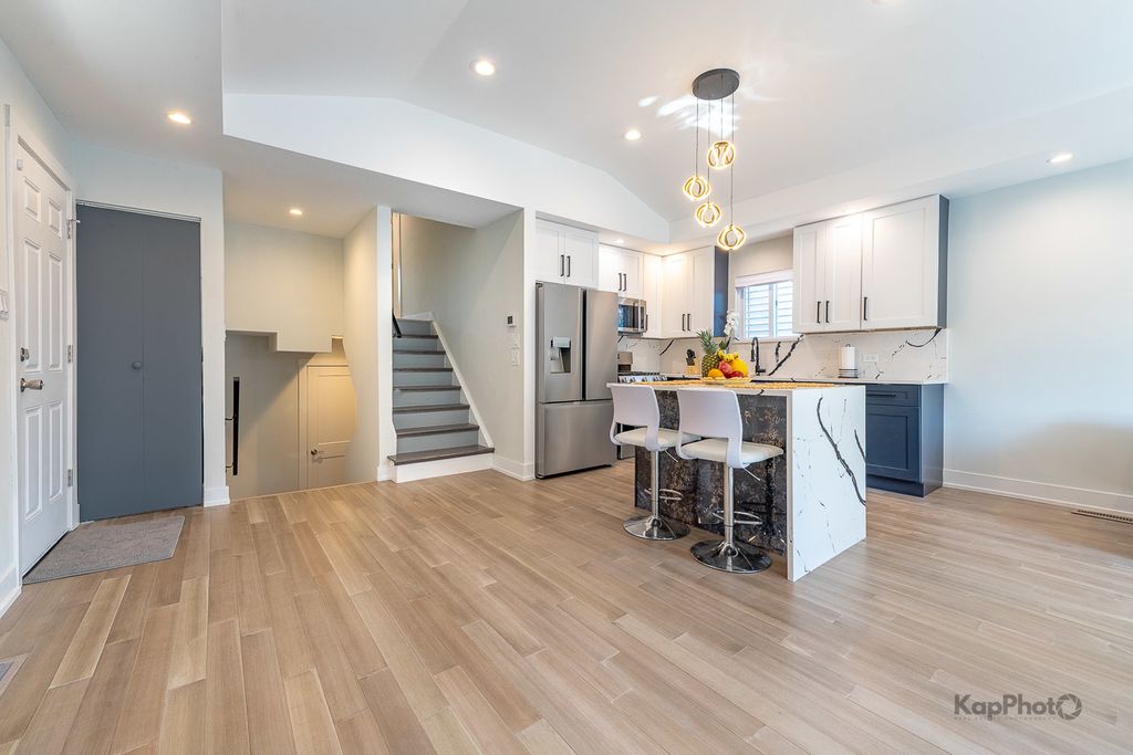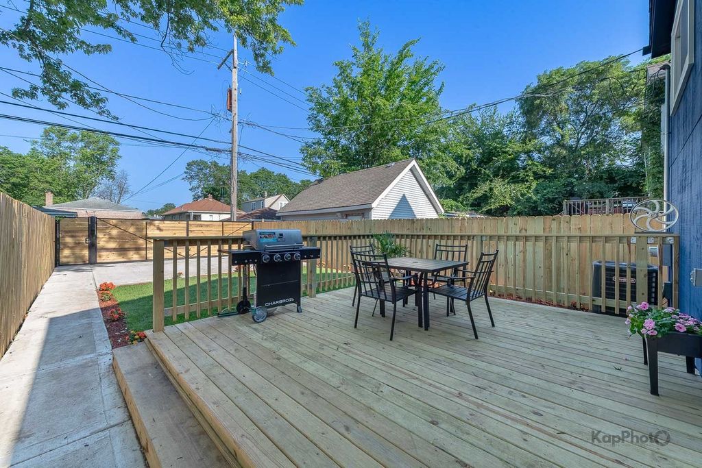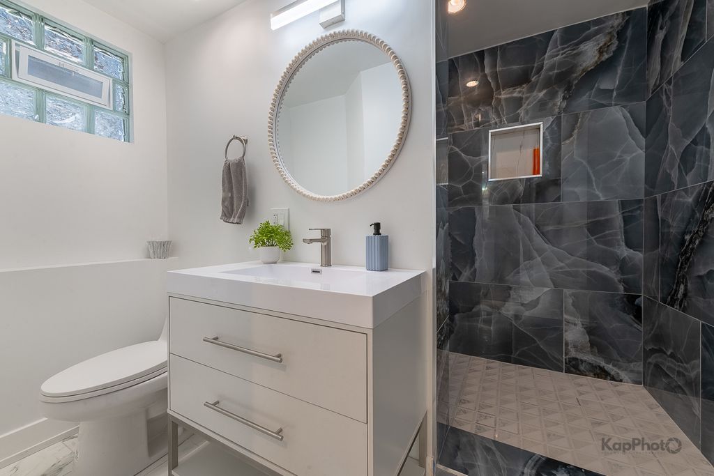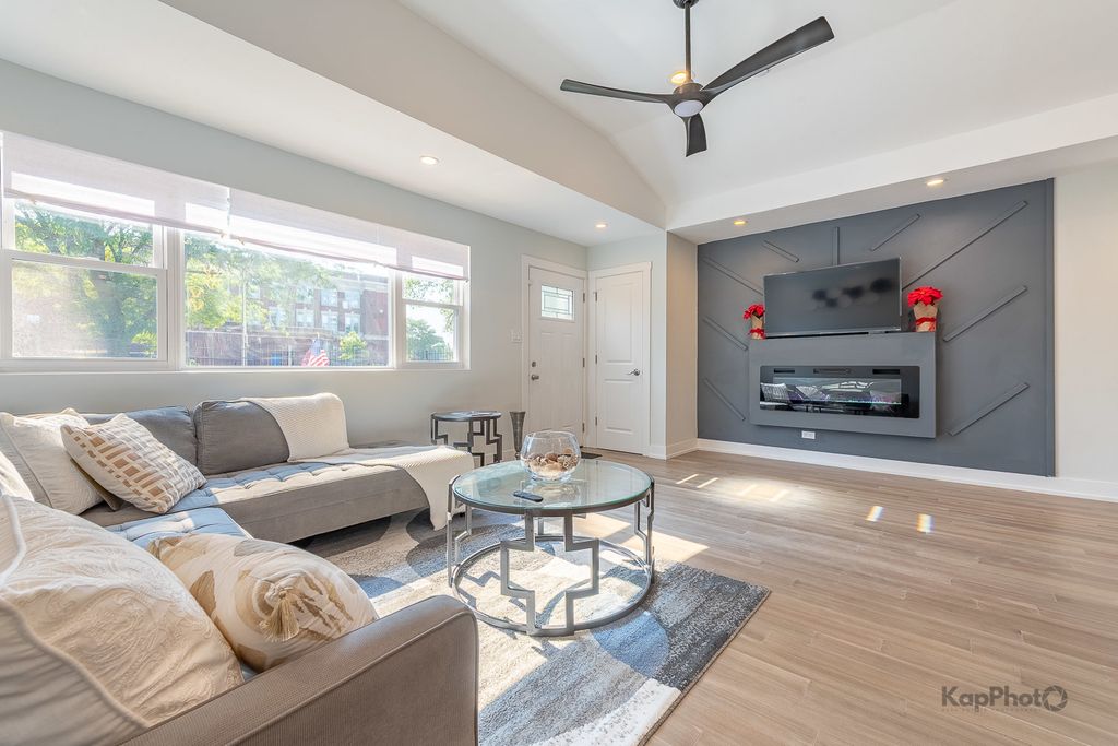 Welcome to this stunning 4 bed/2 bath split-level house. From the moment you step inside, you are greeted by a sunlit living and dining area, beautiful new floors, and a striking accent wall with a fireplace that adds a touch of modern sophistication. Beautiful kitchen with 42-in. custom cabinets, quartz countertops, island, and new stainless steel appliances. Just a few steps up to the 2nd floor, there are 3 bedrooms with plenty of space and storage, and a modern bathroom with gorgeous finishes. The finished lower level expands your living space with a spacious family room with fireplace, a perfect retreat for relaxation and entertainment. Additionally, the lower level hosts a separate bedroom and a beautifully-appointed full bath with a custom shower. Outside, there is a fenced backyard with a deck, perfect for outdoor activities and gatherings, wrought iron gate, and 2 parking spaces. Ideally located near parks, schools, shopping, and only 2 blocks from public transit, this home offers the perfect blend of city convenience and suburban charm. **The seller will pay for the buyer's closing costs.**