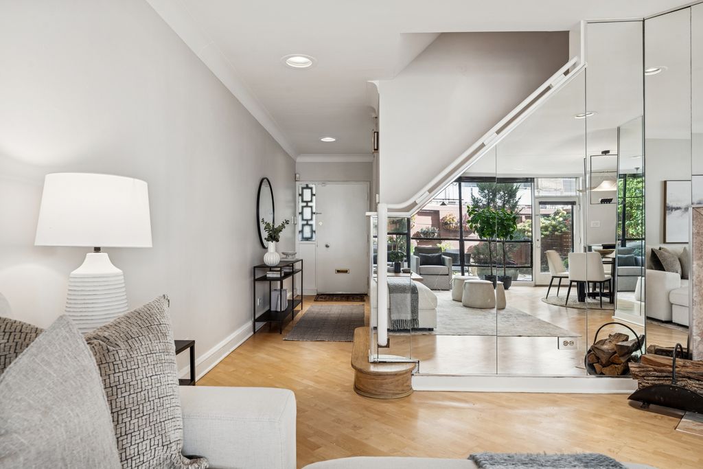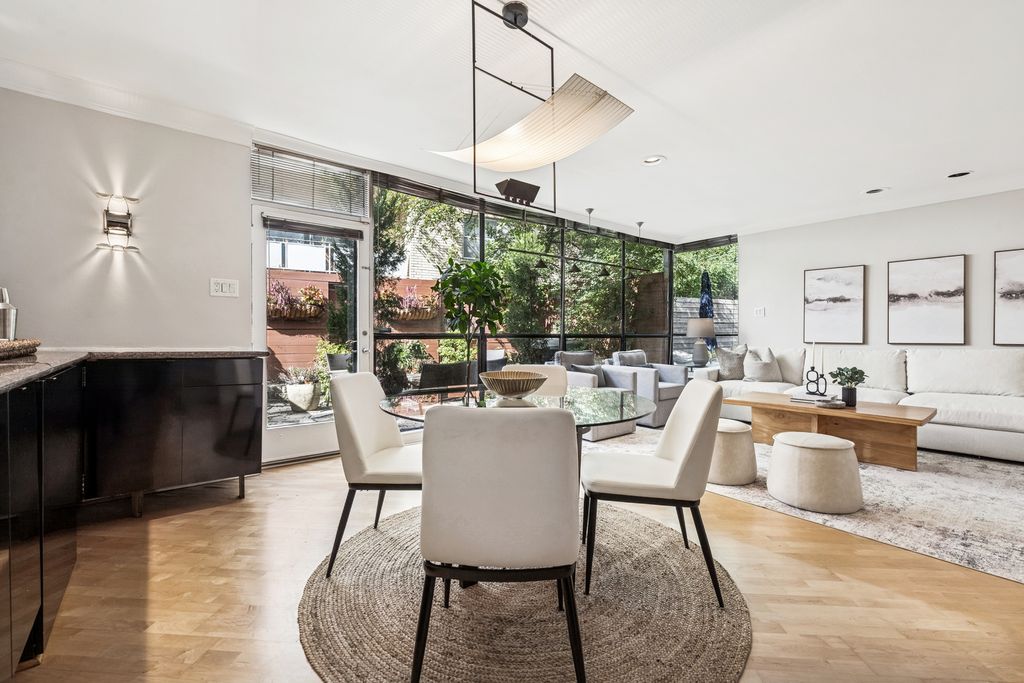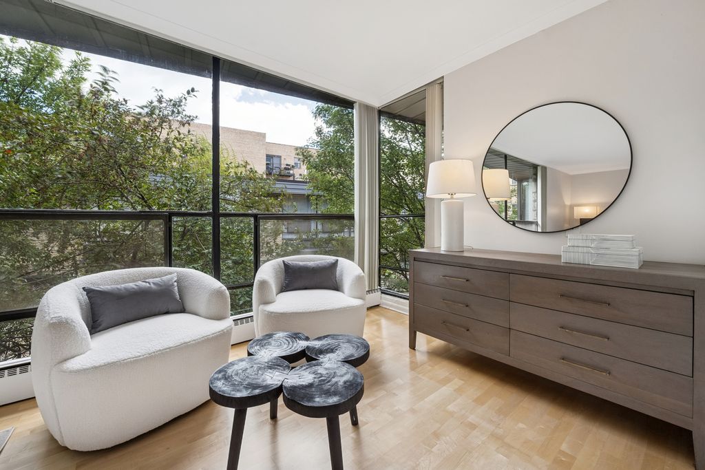 Super cool enormous Mid-Century townhouse that lives like a single family home. The expansive first floor features an open living/dining room with a wall of glass leading to a private patio/yard; a large kitchen w/small den/breakfast room; and a powder room. Upstairs are 3 bedrooms and two original 50's baths. Great lower level with huge recreation room and unbelievably large storage/utility room. Built solid out of steel and concrete, this fee simple townhome is a beautiful courtyard in the heart of East Lakeview and Nettlehorst school district, within steps of Broadway shops and boutiques, the park and the lake.