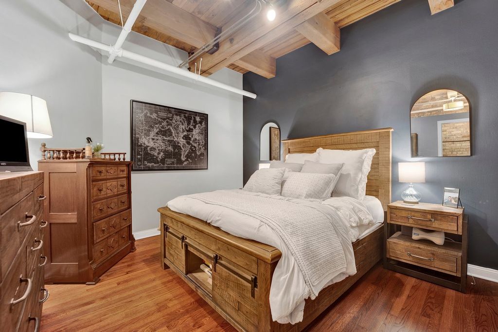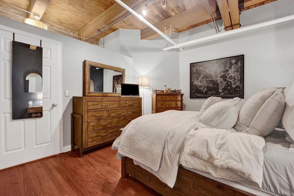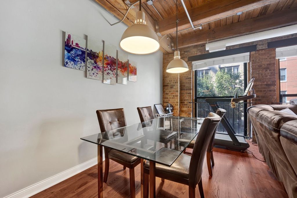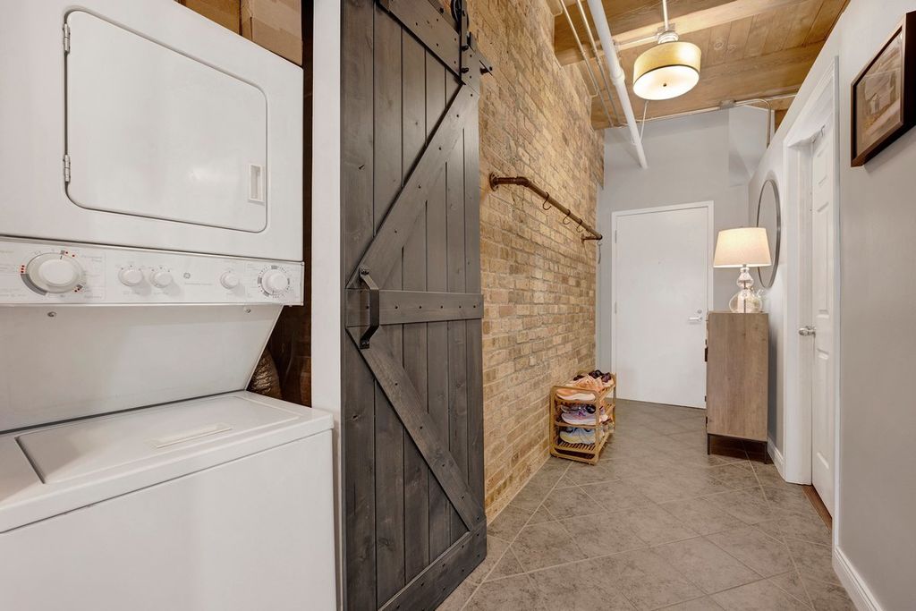 Beautiful 1 Bed / 1 Bath in Prime River North Location!! Step into this true brick & timber loft showcasing 12' ceilings, exposed ductwork, and a bright, open layout with ideal exposure. Dual brick walls create the contemporary industrial-rustic atmosphere you've been searching for. The kitchen features granite countertops, a breakfast bar, and stainless steel appliances, while the bathroom was fully renovated in 2023 with subway tile, an LED mirror, and a sleek euro-style shower. Additional highlights include hardwood floors (2018), an adjustable Elfa closet system, and in-unit washer/dryer. This well-maintained building offers a fitness center, door staff, and a common rooftop deck with BBQ grills and sweeping city views. Pet-friendly and only one block from the CTA, with rental parking available across the street and free parking just two blocks away. CLICK ABOVE FOR VIRTUAL TOUR!