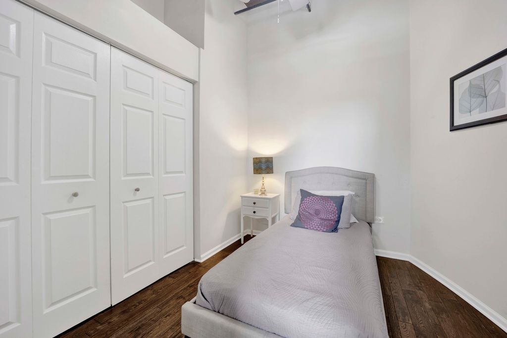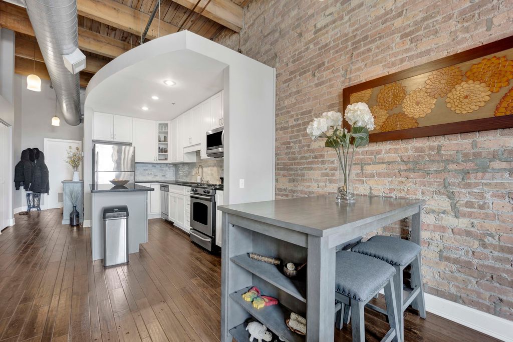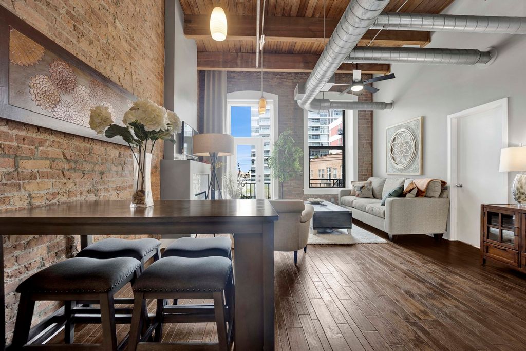 Gorgeous, sun-filled 2 bedroom, 2 bathroom loft in the highly sought-after Bicycle Lofts, perfectly located in the heart of the South Loop. This impeccably maintained and thoughtfully updated home features hardwood floors throughout, an open-concept living and dining area centered around a beautiful fireplace, and a private balcony ideal for outdoor enjoyment. The modern kitchen boasts white cabinetry, a marble backsplash, stainless steel appliances, and a functional island perfect for cooking and entertaining. Both bedrooms have been fully enclosed to provide added privacy, and the home includes a spacious laundry room with side-by-side washer and dryer, as well as custom-built closets for ample storage. A unique lofted area adds even more flexible storage space throughout the unit. Outdoor parking and an additional storage unit are both included in the price. Building amenities include a fitness center, bike room, and storage room. Located just steps from restaurants, shops, and public transportation, this home offers unbeatable access to everything the South Loop has to offer-including Lakefront running paths, Soldier Field, nearby parks, and convenient shopping options like Trader Joe's and Target. Click on 3D tour to virtually walk through unit.
