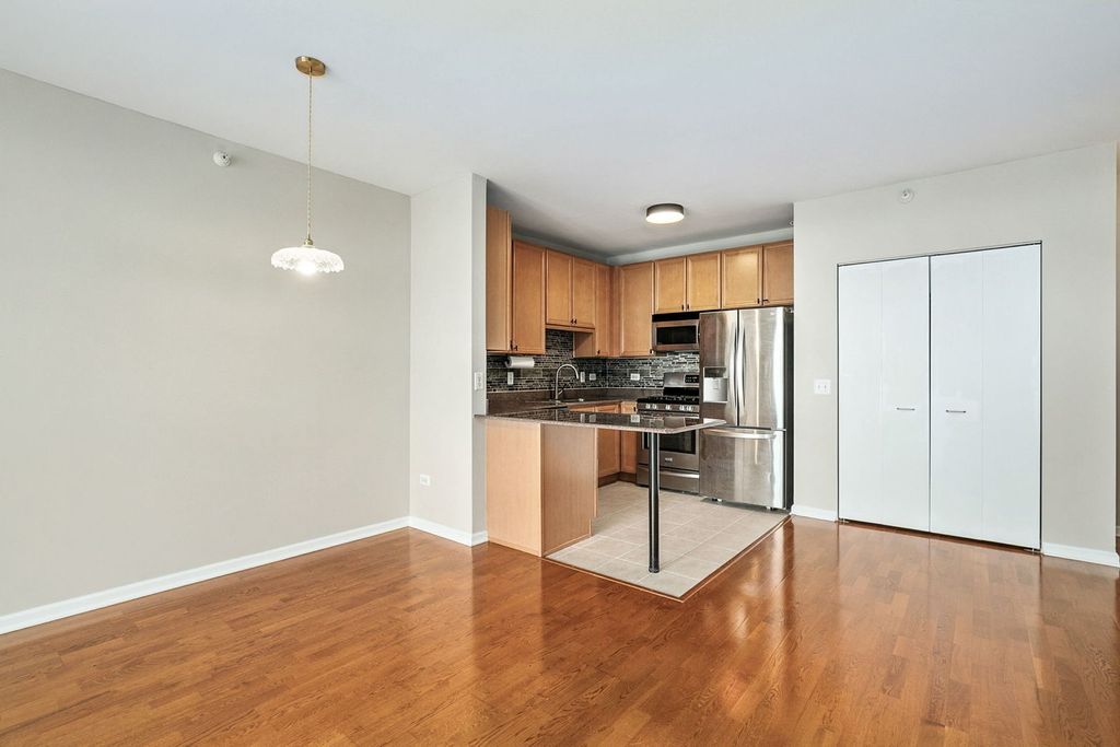 Welcome to your dream one-bedroom unit in the Park Alexandria building! This spacious property boasts an abundance of natural light and stunning west city views. The modern kitchen is a chef's delight, featuring granite countertops, stainless steel appliances, and plenty of cabinet space. The breakfast bar and adjacent eating area seamlessly connect to the generous living room, where you can unwind or entertain. Private balcony, perfect for enjoying your morning coffee while taking in the picturesque views. The primary bedroom is generously sized, easily accommodating a king-size bed, and offers ample closet space perfect for all your needs. You'll also appreciate the large pantry in the kitchen for all your storage needs. Deeded garage parking space is available for $20,000 additional. Amenities include a 24-hour doorman for added security, a fitness center to keep you active, a party room for gatherings, guest suites for visitors, and an outdoor patio with grills and a dog run. Storage lockers are available, along with an attentive manager to assist you. Conveniently located within walking distance to Mariano's, Whole Foods, Heritage Green Park, and the train station, you'll find all your favorite restaurants and shopping just moments away. Ideally located in the top-tier highly sought-after Skinner School District, near Whole Foods, the Riverwalk & all of the world class West Loop dining, shopping, & public transit. This unit truly has it all-comfort, convenience, and style. The seller has loved the home is only selling to relocate for a job and family! Recent building improvements-Heating and duct upgrades (2023), Chiller and control replacement (May 2025), Exterior tile updates, security system enhancements and installation of EV Charging stations.