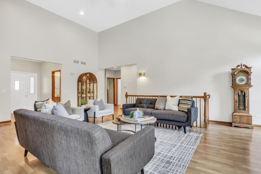 Welcome Home to this exceptional RANCH in the highly sought-after Stonebrook Estates-a true blend of elegance, comfort, and location! This all-brick beauty is perfectly situated on a gorgeous lot surrounded by mature trees, fruit trees, and breathtaking views. Just a short stroll from Bittersweet Golf Course, this home offers the perfect mix of privacy, community, and recreation right at your doorstep. This lovely cul-de-sac location and bight and inviting. A charming front porch sets the tone, welcoming you into a space that is as warm and inviting as it is spacious. Step inside to be greeted by soaring volume ceilings, gleaming luxury vinyl flooring, and walls of windows that flood the home with natural light. The open floor plan is designed for both everyday living and entertaining, with seamless transitions between rooms. The family room is a showpiece in itself-featuring a beautiful brick fireplace as its focal point, creating the perfect spot for cozy nights in. Large windows frame views of the lush backyard while offering plenty of space for gathering with friends and family. Elegant French doors lead into the dining/living room combination, a flexible space ideal for hosting formal dinners, intimate celebrations, or simply enjoying quiet moments. At the heart of the home is the spacious kitchen, designed for both style and functionality. Boasting loads of oak cabinetry, abundant counter space, and a bright eating area that overlooks the backyard, this kitchen makes meal prep and entertaining a breeze. From here, step outside to enjoy the peaceful scenery, entertain guests, or just relax and take in the beauty of your surroundings. A main level laundry room and convenient half bath add everyday ease. The Primary Suite is a luxurious retreat, offering an oversized bedroom and a spa-like en suite featuring a soaking tub, separate shower, and double sink vanity. Two additional generously sized bedrooms and another full bath complete the main level, providing plenty of space for family, guests, or a home office. The expansive basement offers endless possibilities-whether you envision a recreation area, home theater, gym, or additional living quarters, this blank canvas is ready for your personal touch. With its prime location, thoughtful layout, and timeless design, this home is more than just a place to live-it's a lifestyle. From its close proximity to golf and parks to its serene lot and beautiful interiors, this is one you won't want to miss!