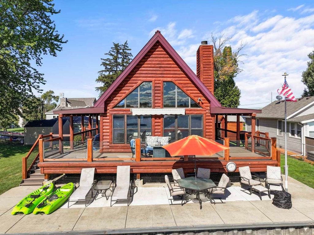Dreaming of lake life? This one-of-a-kind A-frame log cabin sits right on the shores of beautiful Pistakee Lake-offering jaw-dropping views and the kind of peace you just can't buy anywhere else. Step inside and be wowed by many windows and skylights that flood the space with natural light and showcase panoramic water views. The open-concept living area features a gas fireplace, and that warm rustic charm only a log home can deliver. This home features heated floors throughout the main level and boasts a new composite wrap-around deck, perfect for morning coffee or evening sunsets. You'll love the electric sauna for post-boat relaxation. Outside, the perks keep coming-new dock and boat lift installed in 2023, plus a 2-story, 2-car garage with a Storm Safe Shelter and more storage than you'll ever need. There's also a storage shed, carport, and additional parking on the asphalt driveway. Don't forget about the retractable awning on the back of the deck, offering shade while you take in the lake views. Whether you're boating, ice skating, or ice fishing-Pistakee Lake offers year-round fun and unbeatable beauty. This is not just a home-it's a lifestyle. Your dream lakefront retreat is finally on the market.