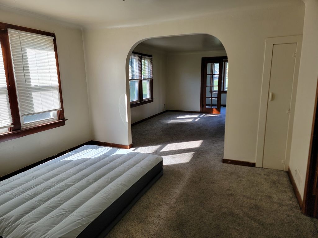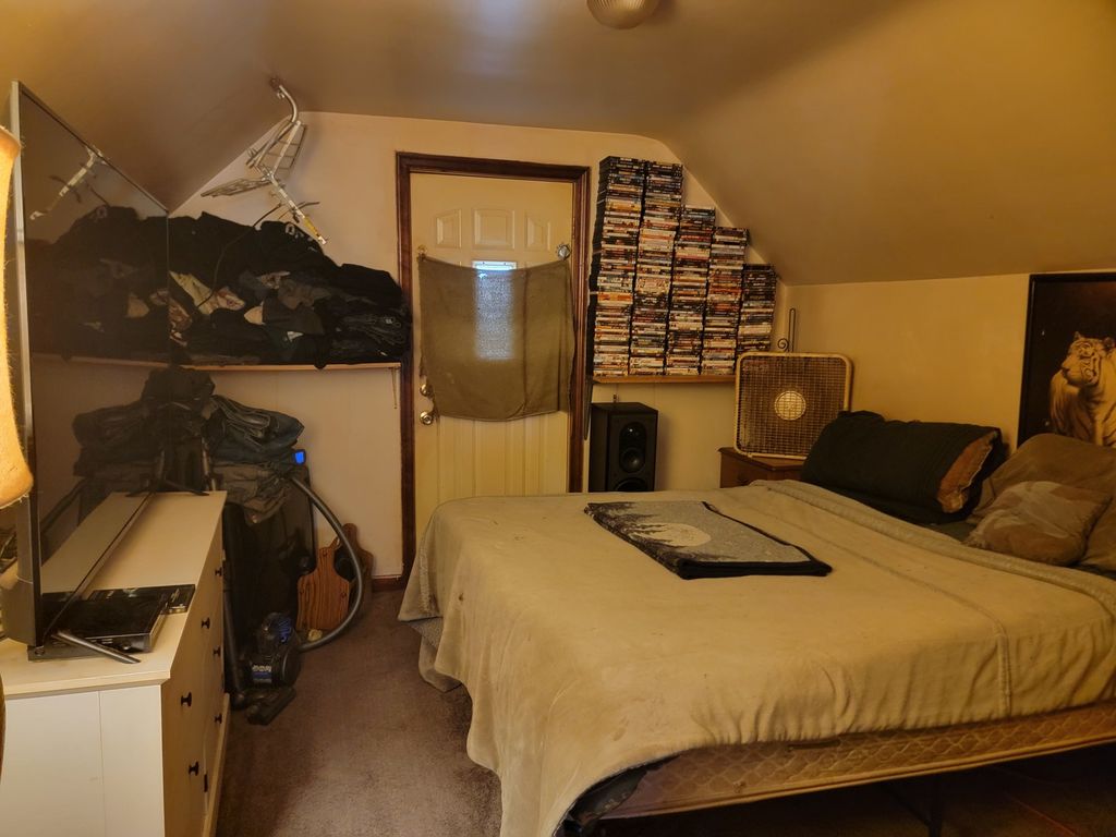 Welcome to this charming 1.5 story home offering flexible living options and great location next to park. The main level features 2 bedrooms and full bath, with bright and comfortable living areas. Upstairs you'll find a private suite with 1 bedroom, full bath, and kitchenette - ideal for related living, guest retreat, or even a home office. A 2 car detached garage provides ample storage, while mature trees surround the yard along with a fire pit for outdoor experiences. Don't miss this opportunity - perfect for multi-generational living or those who simply want a little extra space!