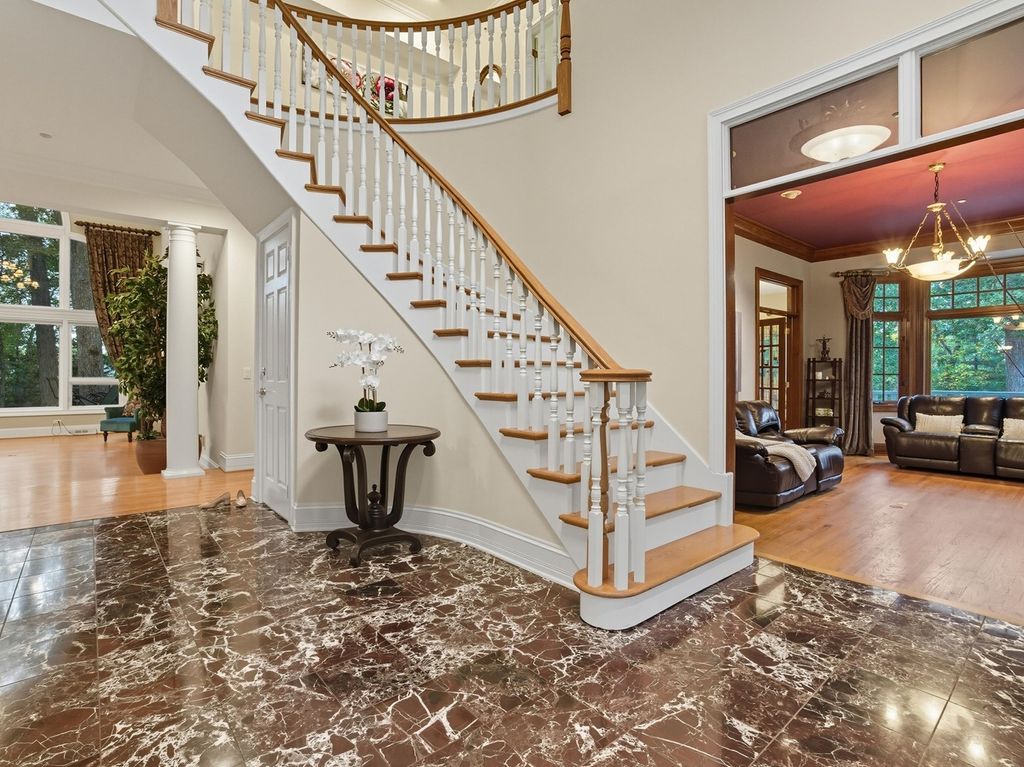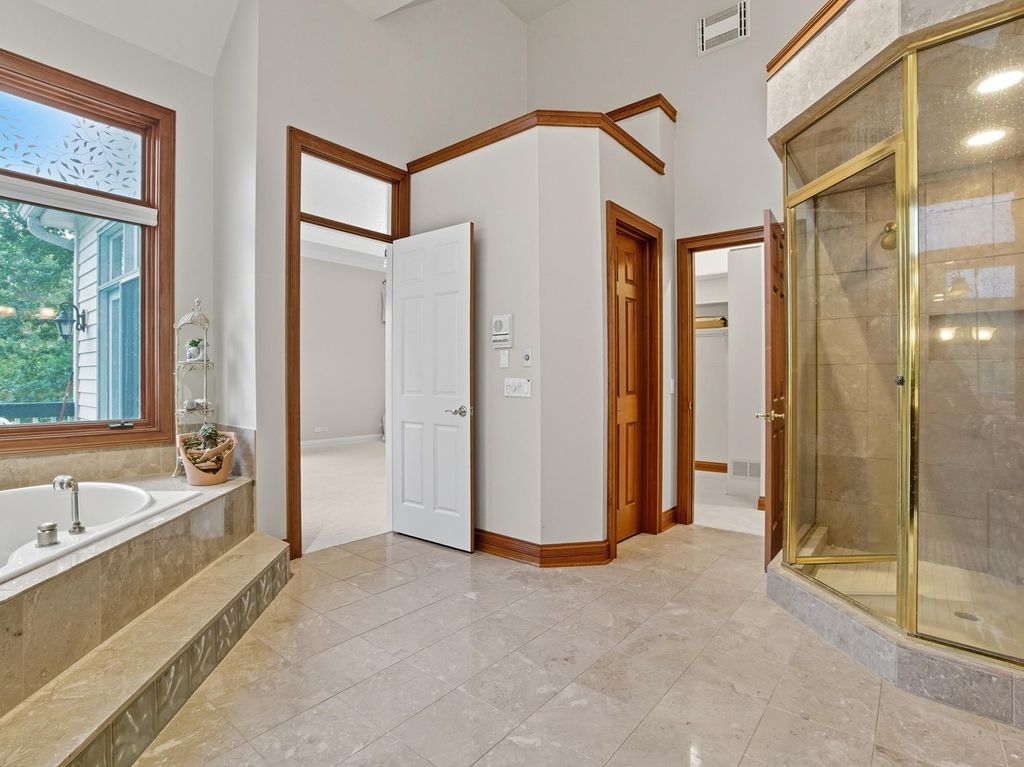 Welcome to 40W930 Trotter Lane - a truly exceptional 6 - bedroom, 7 -bathroom estate nestled on 1.75 wooded acres in the heart of St. Charles. Originally built by a premier luxury home builder as his personal residence, this timeless masterpiece showcases thoughtful craftsmanship and architectural elegance throughout. From the moment you enter, you're greeted by dramatic volume ceilings, a sweeping staircase, and rich marble flooring. The formal living room features custom cherry millwork and a sunken design that adds both charm and sophistication. The sun-drenched dining room is equally refined with detailed dental crown molding - perfect for entertaining on any scale. At the heart of the home lies a gourmet chef's kitchen, appointed with premium appliances and expansive granite counters. The adjoining screened porch and large deck offer a seamless transition to the peaceful, wooded outdoors - ideal for morning coffee or evening gatherings. The soaring family room impresses with 20+ ft ceilings, stately white columns, a dramatic floor-to-ceiling fireplace, and oversized Palladian windows that frame the picturesque views. The luxurious first-floor primary suite is a true retreat, featuring a walk-in closet and a spa-like European bath with Jacuzzi, steam shower, and direct access to a private library or office through French doors. Upstairs, you'll find four generously sized bedrooms, two full baths, and access to an unbeatable in-law arrangement you won't want to miss. The walk-out basement is built for entertaining, complete with a large recreation area, full bath, a 6th bedroom, and abundant storage. Recent updates include new Roof and Gutter Guards (2021), Furnaces, Humidifier,Thermostat (2022), Three AC units (2022), Two Water Heaters (2022), Refrigerator (2022), Double Oven (2020), New Carpet (2025), Septic Pump (2022), and Septic System Timer (2024) Washer and Dryer (2022). Additional features include a 3.5-car heated garage (with a 4th bay that can be converted back), central vacuum, built-in surround sound, and intercom system. This is more than a home - it's a rare opportunity to own a one-of-a-kind estate in one of St. Charles' most desirable locations. Located in the award-winning St. Charles School District.