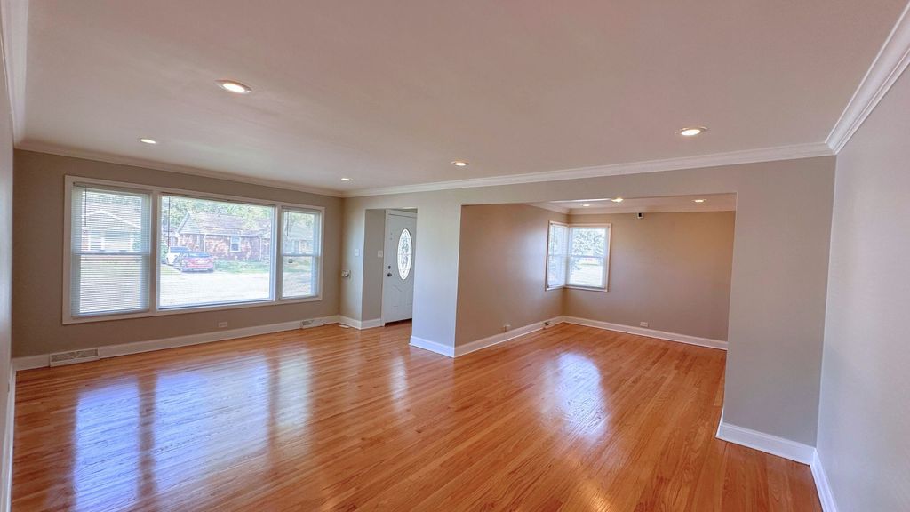 This 3-bedroom, 2-bath, home is a true standout-featuring quality finishes, natural light throughout, and a flexible floor plan ideal for modern living. Step into an expansive living room filled with light from massive portrait windows. The space flows into a designated dining area that hugs the fully updated kitchen. Newly refinished light hardwood floors run throughout the main level, accented by stunning custom crown molding and detailed trim work. The kitchen is the heart of the home-boasting bright granite countertops, modern stainless steel appliances (including a gas cooktop, oven range, microwave, and dishwasher), a custom tile backsplash, and tons of counter and cabinet space. All three bedrooms are generously sized with multiple windows, ample closet space, and great natural light. The shared full bath is pristine, featuring glass block windows, detailed tilework, a large vanity, and a tiled shower/tub combo. A secondary pass-through room off the kitchen connects directly to the 2-car garage-perfect as a mudroom, home office, or drop zone. Downstairs, the fully finished basement is an entertainer's dream or ideal secondary living space. It includes a beautifully designed wet bar with tile finishes, a second full bathroom with a custom tile shower and built-in shelving, a dedicated laundry room, and a mechanical/storage area for added functionality. The home sits on a large corner lot with brick and stone exterior, a private fenced-in backyard, a spacious brick patio, and a storage shed. A private driveway leads to the attached 2-car garage with easy access from the main road. Located in South Holland's Central District, this quiet, established neighborhood blends small-town charm with modern convenience-just minutes from parks, grocery stores, and new retail developments. Known for its strong community roots and up-and-coming energy, this area offers a peaceful pace while staying connected to the city. This move-in-ready home is packed with upgrades, character, and space-don't miss your chance to make it yours.