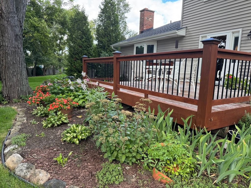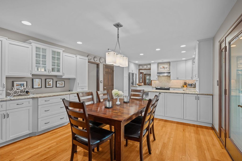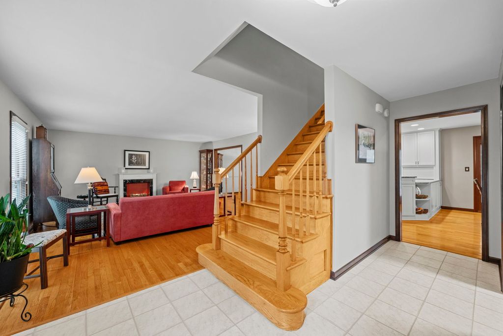 Tucked away on a peaceful cul-de-sac in the highly sought-after Naper Carriage Hill community, this beautifully updated and meticulously maintained home sits on a professionally landscaped lot just under half an acre-a true retreat in the heart of Naperville. Step into the custom-designed kitchen featuring 42" white cabinetry with soft-close doors, pull-out pantry around a newer fridge, granite countertops, stainless steel appliances, and a built-in appliance hutch-style meets function in every detail. The kitchen opens seamlessly to a sunny breakfast area with a matching white built-in hutch, and flows into a spacious family room with a bay window and cozy fireplace. You'll love the separate formal living and dining rooms, ideal for entertaining guests year-round. Hardwood floors span both the main and upper level, giving warmth and timeless appeal. Upstairs, the king-sized primary suite offers a walk-in closet and updated en-suite with a walk-in shower. All bedrooms feature good closet space, with remodeled bathrooms showcasing neutral ceramic tile, granite counters, and updated lighting. The partially finished basement provides space for a rec room, gym, or play space-plus a large unfinished area perfect for storage, hobbies, or a workshop. But the true showstopper is the backyard: a large deck overlooks two paver patios, mature trees, flowering perennials, and a tranquil sitting areas, offering both privacy and elegance. It's a gardener's dream and entertainer's paradise all in one. Major updates include: Furnace (2024), Andersen Windows (2024), Roof (2023), Radon Mitigation System (2015), and more giving peace of mind for years to come. Enjoy walkability to local parks, Carriage Hill Pool & Tennis Club, top-rated schools, and a quick drive to downtown Naperville, Metra, and expressways.