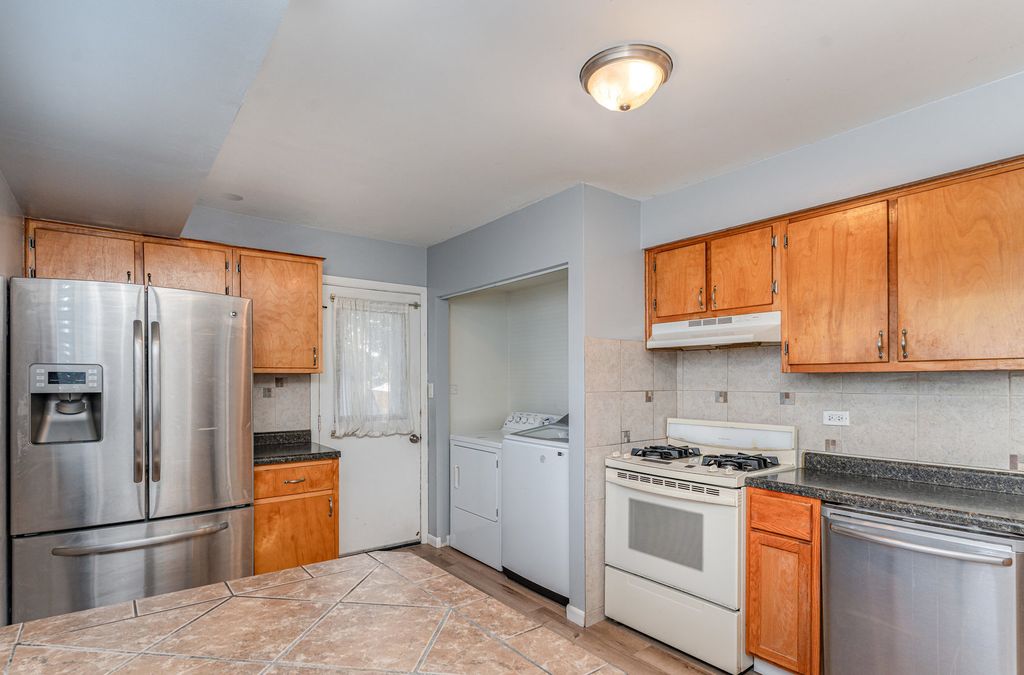 Perfect starter or downsize home in highly ranked school districts (D-140 and D-230). This home features 3 bedrooms, 1.5 baths (master half bath), and an eat-in kitchen. The interior was recently painted and has new luxury vinyl flooring throughout. Located one block away from Kelly Park with beautiful trails, baseball fields, playground, and a newly expanded facility that offers a fitness center and an indoor turf field. Convenient location is very close to shopping, dining, entertainment, and quick I-80 highway access. The garage roof and washing machine were replaced in 2024. Shed and Garage being sold AS-IS.