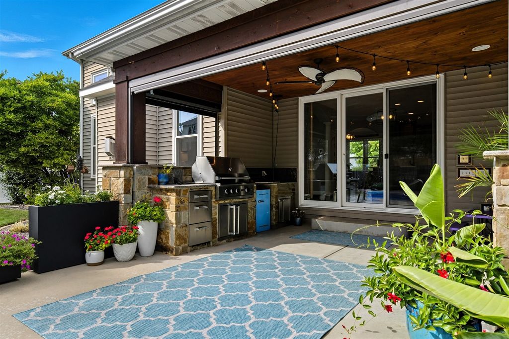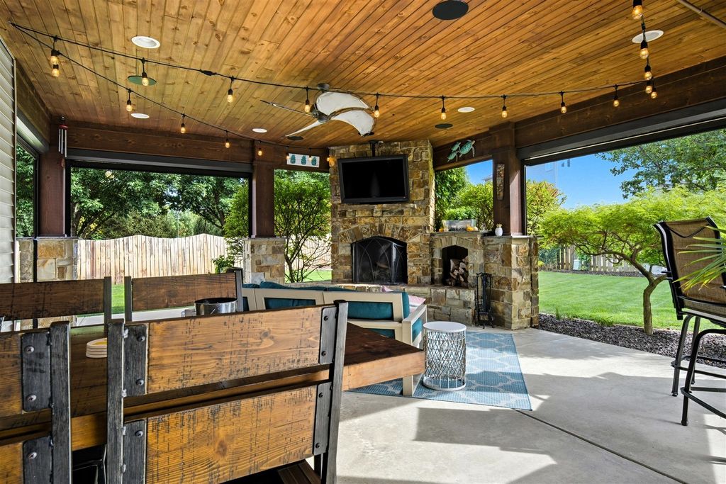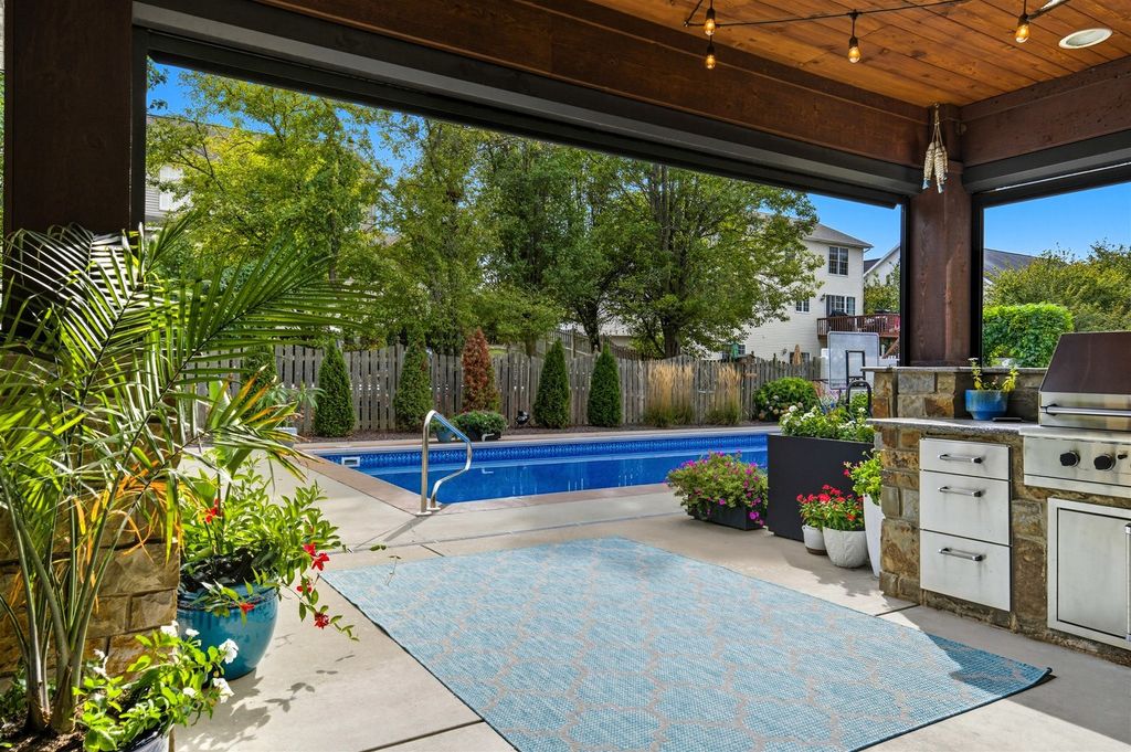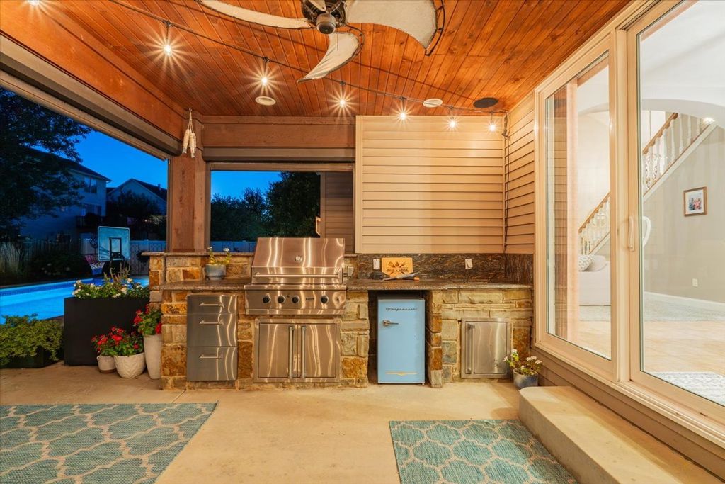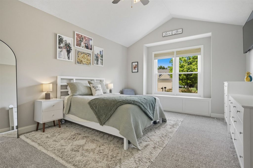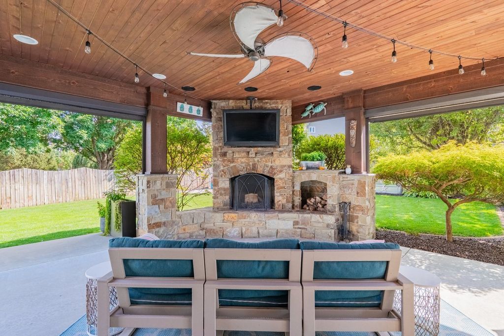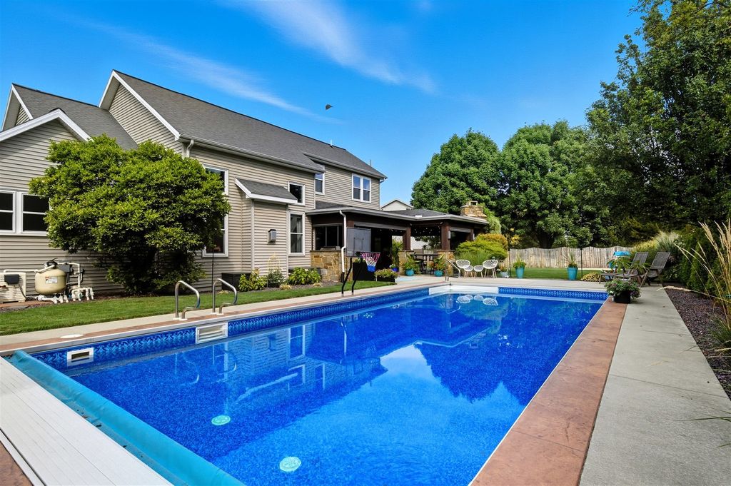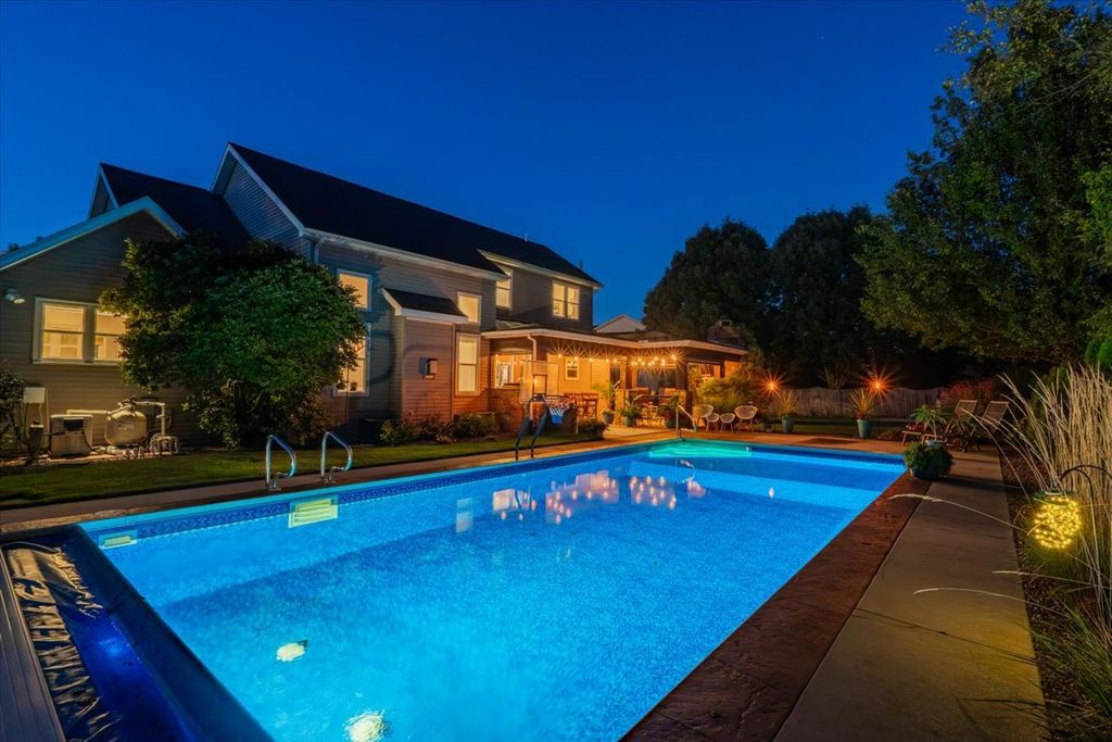 Elegant and Immaculate Inside and Out! Located in the desirable Eagle Crest East subdivision, this beautifully maintained home offers an exceptional blend of style, comfort, and function-with stunning updates throughout and an outdoor oasis designed for entertaining and relaxation. The main level features a grand living room with soaring vaulted ceilings and a cozy gas fireplace, opening seamlessly to the spacious, updated kitchen and dining area. The kitchen is complete with new quartz countertops (2022), a stylish new backsplash, breakfast bar, and dining space, along with a brand-new Samsung refrigerator and dishwasher (2025). The first-floor primary suite offers a private retreat with double vanities, a jetted tub, separate shower, and walk-in closet. A convenient back hallway connects to the three-car garage and includes both a remodeled half bath and laundry room completed in 2025. Additional improvements include new carpet and luxury vinyl plank flooring, fresh interior paint, all new windows and sliding door installed in 2023, and a tankless water heater added in 2024. The home also features a zoned heating and cooling system for year-round comfort. Upstairs you'll find three additional bedrooms, a full bathroom, and a versatile loft space perfect for an office, study, or play area. The finished basement offers even more living space with a large family room wired for sound, a full wet bar, a full bathroom, and a storage room with built-in shelving. Step outside to your private backyard oasis, surrounded by professional landscaping and thoughtfully designed for both relaxation and entertainment. The in-ground pool has been extensively updated with a new liner, heater, salt cell, light glass, and drainage system. The integrated sound system includes new pool speakers, updated components, and Sonos app integration, complemented by an outdoor TV and speaker setup. A covered cabana with fireplace and automatic shades provides the perfect retreat, while the outdoor kitchen with gas-plumbed Viking grill makes hosting effortless. A zoned irrigation system allows for easy maintenance, and the large fenced side yard and separate pool/outdoor storage garage complete this exceptional property. Every inch of this home reflects quality craftsmanship, thoughtful upgrades, and meticulous care-inside and out. A rare opportunity to own a move-in ready home with resort-style amenities in the sought-after Eagle Crest East neighborhood.