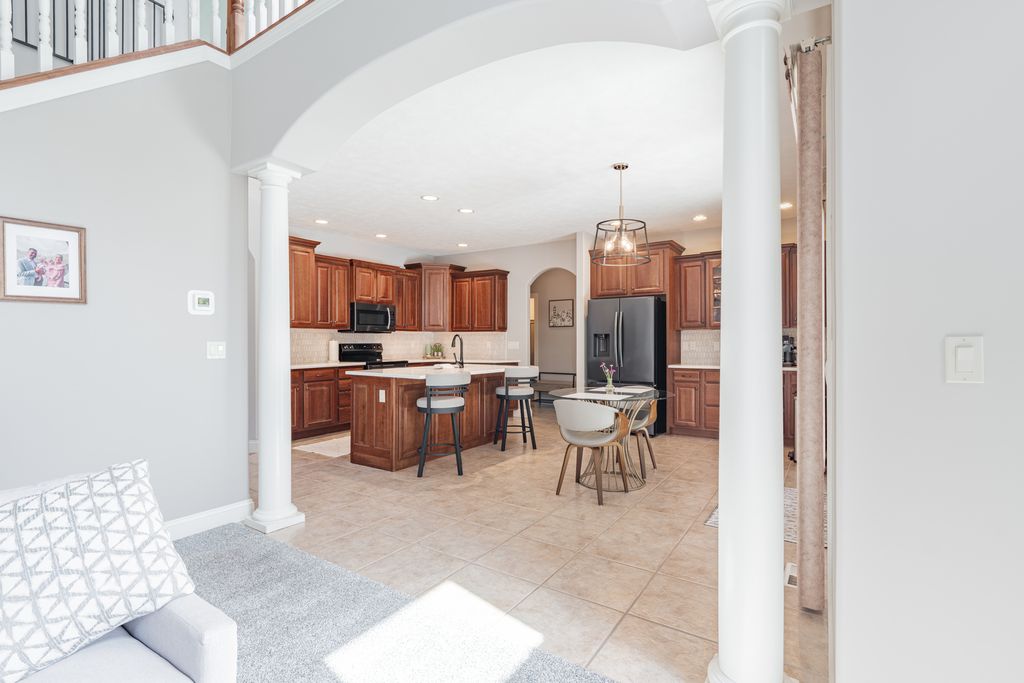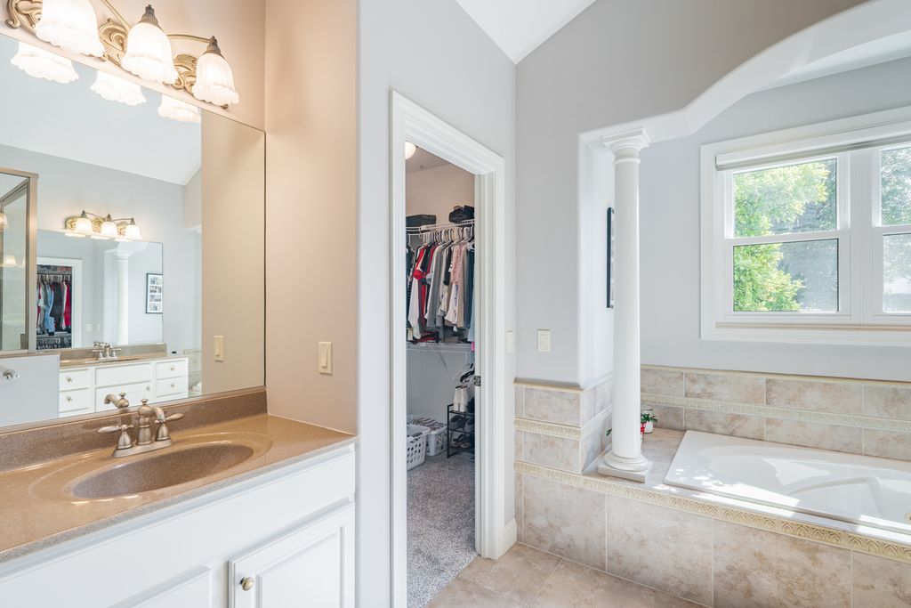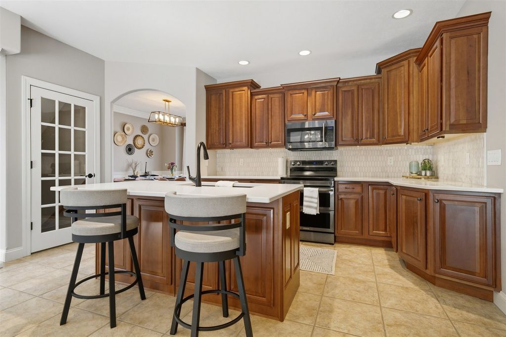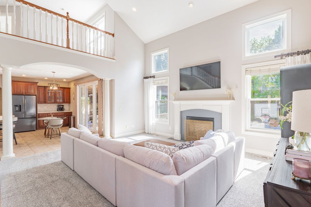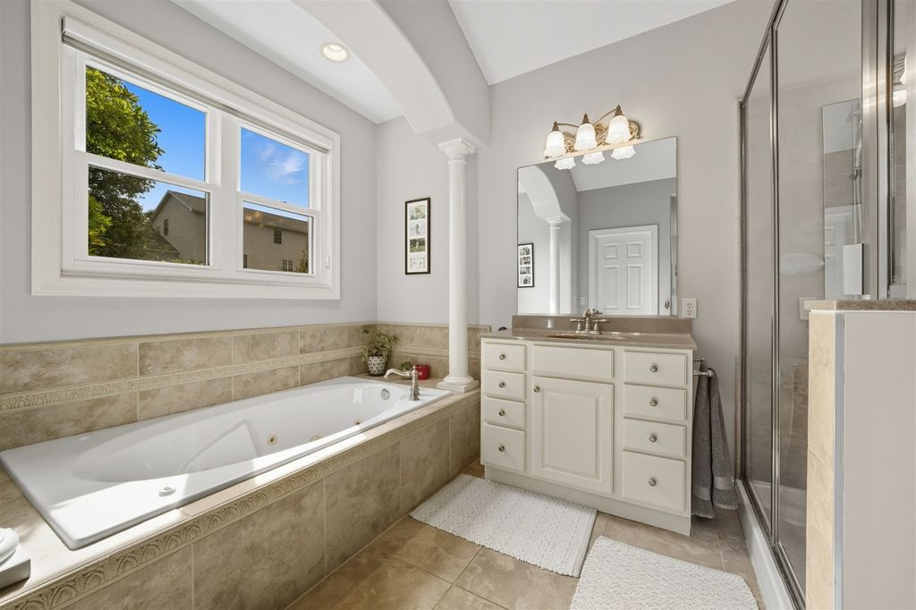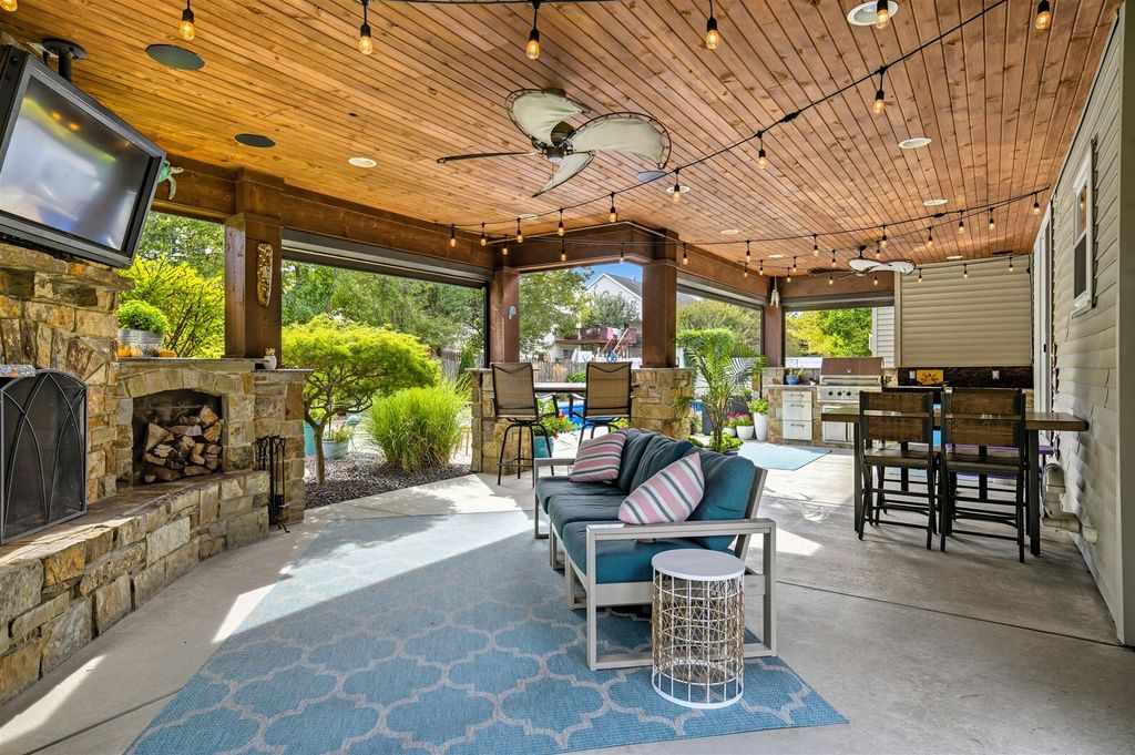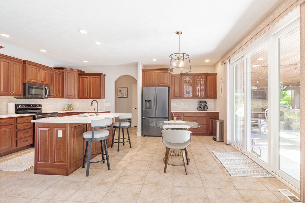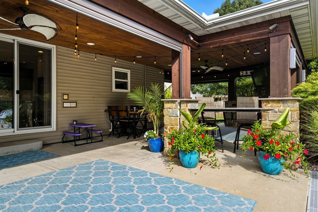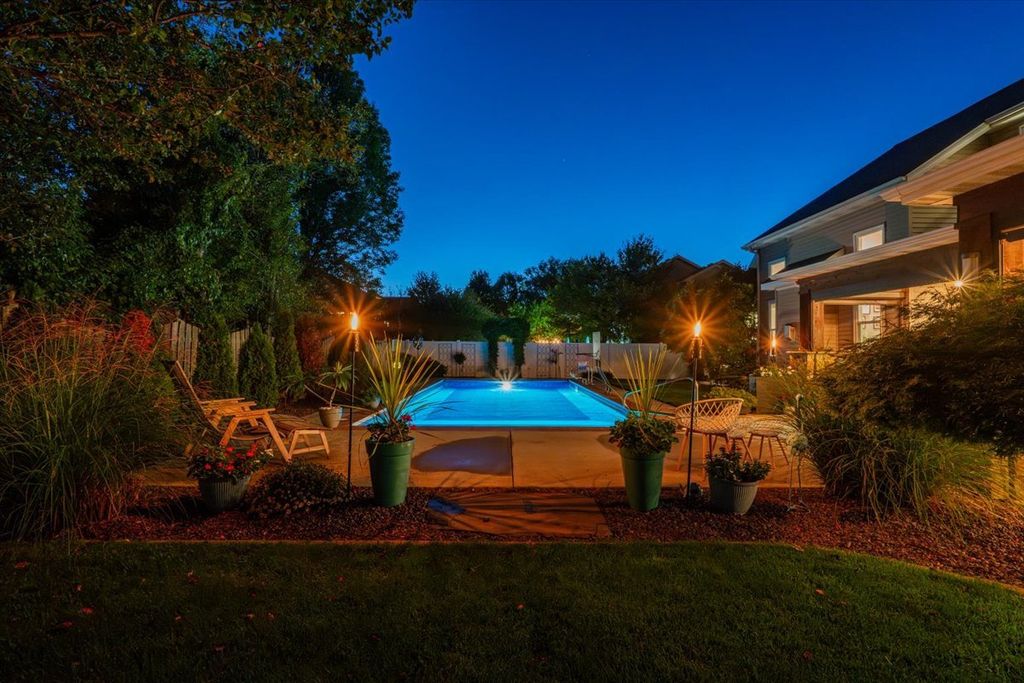 Elegant and Immaculate Inside and Out! Located in the desirable Eagle Crest East subdivision, this beautifully maintained home offers an exceptional blend of style, comfort, and function-with stunning updates throughout and an outdoor oasis designed for entertaining and relaxation. The main level features a grand living room with soaring vaulted ceilings and a cozy gas fireplace, opening seamlessly to the spacious, updated kitchen and dining area. The kitchen is complete with new quartz countertops (2022), a stylish new backsplash, breakfast bar, and dining space, along with a brand-new Samsung refrigerator and dishwasher (2025). The first-floor primary suite offers a private retreat with double vanities, a jetted tub, separate shower, and walk-in closet. A convenient back hallway connects to the three-car garage and includes both a remodeled half bath and laundry room completed in 2025. Additional improvements include new carpet and luxury vinyl plank flooring, fresh interior paint, all new windows and sliding door installed in 2023, and a tankless water heater added in 2024. The home also features a zoned heating and cooling system for year-round comfort. Upstairs you'll find three additional bedrooms, a full bathroom, and a versatile loft space perfect for an office, study, or play area. The finished basement offers even more living space with a large family room wired for sound, a full wet bar, a full bathroom, and a storage room with built-in shelving. Step outside to your private backyard oasis, surrounded by professional landscaping and thoughtfully designed for both relaxation and entertainment. The in-ground pool has been extensively updated with a new liner, heater, salt cell, light glass, and drainage system. The integrated sound system includes new pool speakers, updated components, and Sonos app integration, complemented by an outdoor TV and speaker setup. A covered cabana with fireplace and automatic shades provides the perfect retreat, while the outdoor kitchen with gas-plumbed Viking grill makes hosting effortless. A zoned irrigation system allows for easy maintenance, and the large fenced side yard and separate pool/outdoor storage garage complete this exceptional property. Every inch of this home reflects quality craftsmanship, thoughtful upgrades, and meticulous care-inside and out. A rare opportunity to own a move-in ready home with resort-style amenities in the sought-after Eagle Crest East neighborhood.