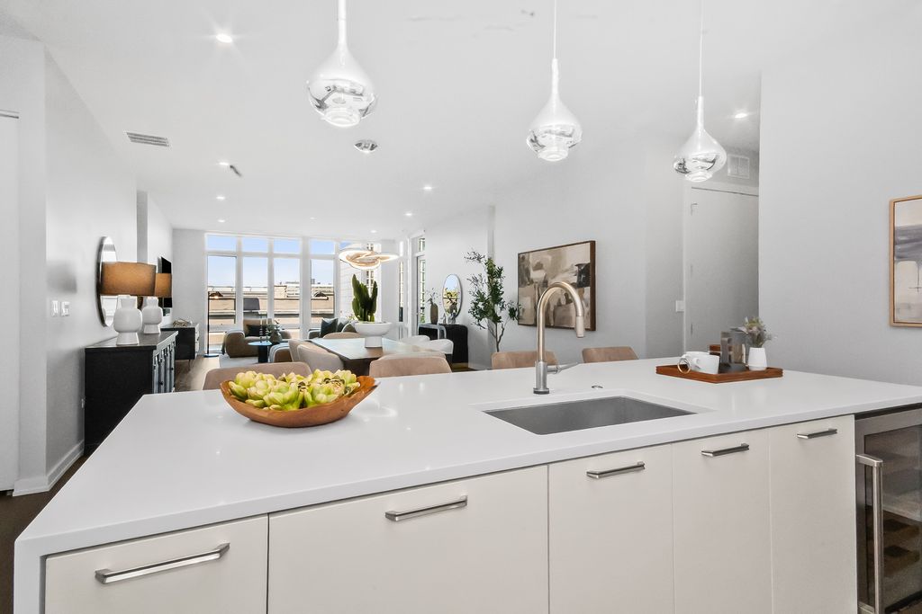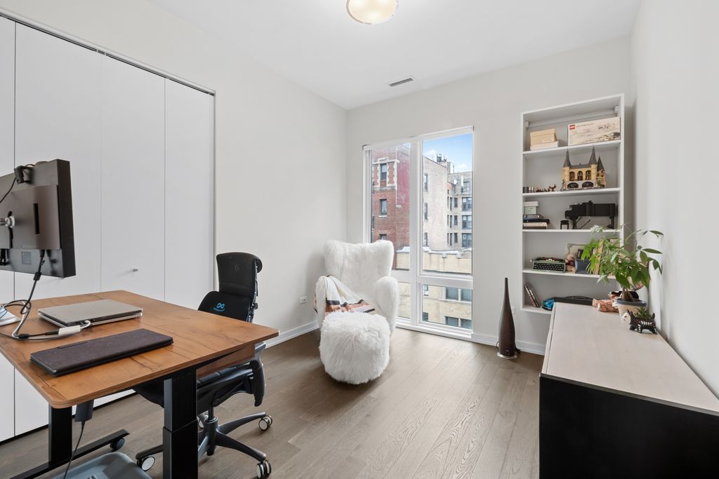 Better than new! Sun-drenched corner 4BR + office in a boutique elevator building-single-level living Nearly 2,300 sq ft with 10' ceilings, floor-to-ceiling windows and premium wide-plank engineered wood floors. $150K+ in curated upgrades: radiant-heated floors in all baths, California Closets in every bedroom, motorized blackout shades, Sonos speakers, Lightology lighting and more. The chef's kitchen shines with a Sub-Zero 36" built-in French-door fridge, Wolf 36" gas range plus wall oven & microwave, Miele dishwasher, quartz waterfall island, and custom Rovere Spazzolato cabinetry. A serene primary suite features a spa bath with soaking tub, floating double vanity and Waterworks fixtures, plus a fitted walk-in closet. Flexible plan easily creates a WFH office or guest suite. Private outdoor space and a full-size laundry room. Heated garage parking available, with optional lift for two cars. Coveted Alcott School District-steps to the lake, park, zoo and shops. Turn-key Lincoln Park luxury.