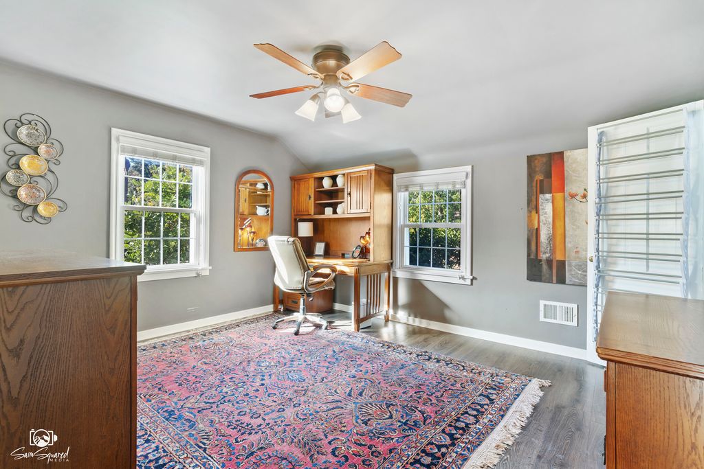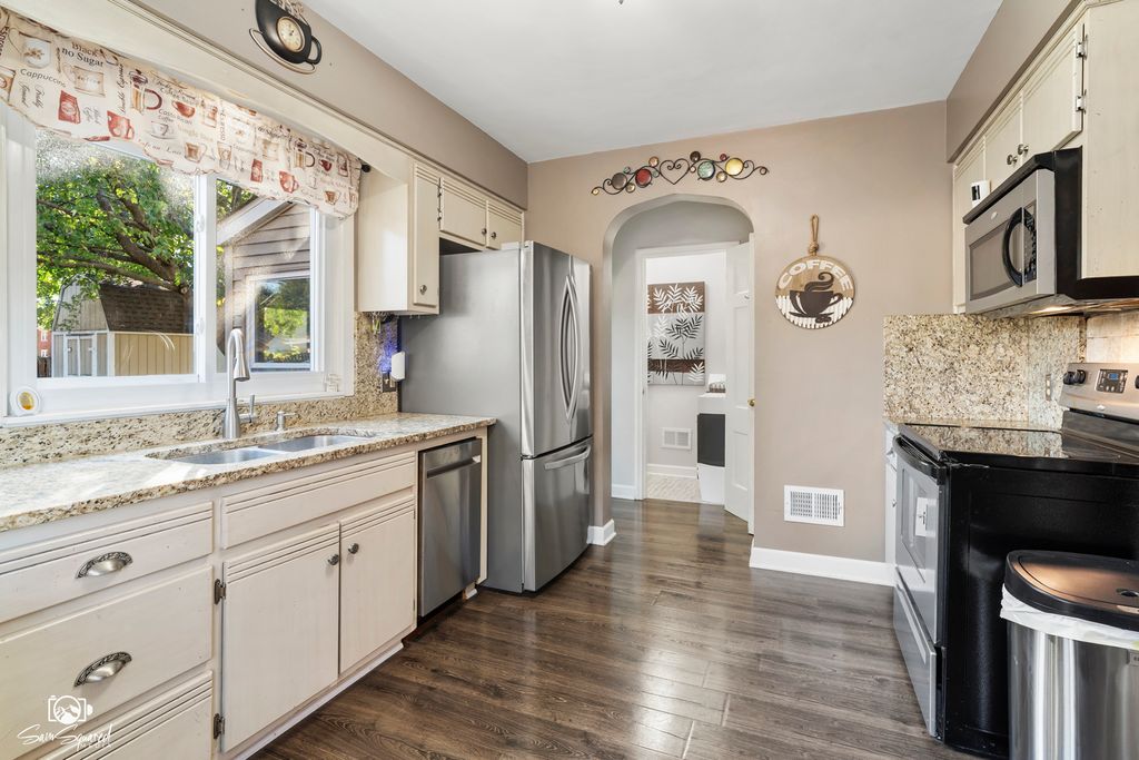 This charming two-story lime and siding home captures the warmth and character of the Cathedral Area while offering all the modern comforts you've been wanting. Step inside and feel instantly at home in the spacious living room, where a classic fireplace sets the perfect tone for cozy evenings and gatherings with loved ones. The formal dining room opens right into the kitchen, making family dinners and friendly get-togethers effortless. The kitchen is very practical, featuring granite countertops, plenty of cabinet and table space, a handy pantry, and stainless steel appliances-all ready for you to enjoy. Just beyond the kitchen, a short hallway leads to a convenient half bath and a bright, three-season room that overlooks the fenced backyard-a wonderful spot for morning coffee, quiet reading, or simply relaxing at the end of the day. Outside, you'll find a storage shed and an oversized two-car garage, offering plenty of room for hobbies and everyday needs. Upstairs, three comfortable bedrooms provide the perfect retreat, with two offering walk-in closets and the third featuring an oversized closet. A full bath is located just steps from the primary bedroom for easy access. Downstairs, the finished basement is designed for comfort and fun, complete with a family room, a wet bar with a beverage fridge, recessed lighting, and lots of space to unwind. There's also a flexible room that can serve as an office or workout area, plenty of storage, a utility room, and a tiled full bath with a walk-in shower. Blending timeless charm with thoughtful updates, this home feels welcoming from the moment you walk in-a true gem in the heart of the Cathedral Area.