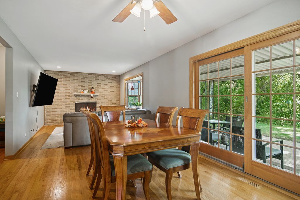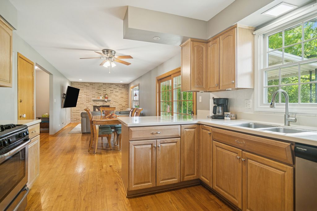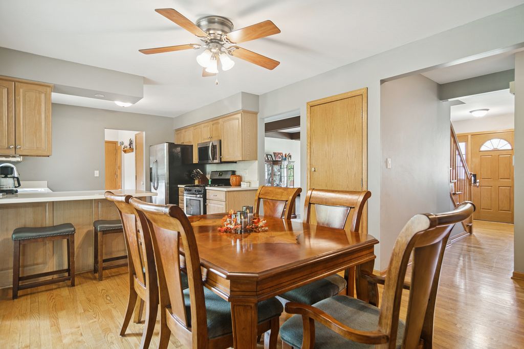 Welcome to this wonderfully maintained home in sought after Winston Knolls subdivision! A stunning and newly refinished brick paver driveway and walkway greet you as you approach the entrance to this 3+ bedroom home which offers an open concept floor plan loaded with so many features! The main level boasts newer hardwood floors throughout, a spacious kitchen with stainless steel appliances, ample counter space, cabinets and a breakfast bar! Other highlights on the main level include a first- floor primary bedroom, full bath, formal living room, eating area, family room with brick, gas log fireplace, and a mud room & laundry with exterior access to the amazing backyard. On the second level, you will find 2 additional generous sized bedrooms, a full bath and a nice loft ideal for use as an office or can be closed off for a 4th bedroom. All bedrooms have ceiling fans and lots of natural light coming in from the oversized windows. Step outside to the backyard oasis showcasing an expansive, covered brick paver patio and gorgeous yard. The unfinished basement provides plenty of storage and additional space to make your own. Recent improvements include a brand-new roof and gutters (2025), new AC (2024) newer carpeting and recently painted! Located within award winning District 15 Whitely Elementary, Thomas Jefferson Middle School & District 211 Fremd High School, the location can't be beat! Enjoy the convenience of neighborhood amenities: Willow Recreation Center, Bo's Run dog park, Dog park, Willow Skate Park, and the library as well as easy access to 2 Metra stations, I-90 and area shopping and restaurants. Welcome Home!