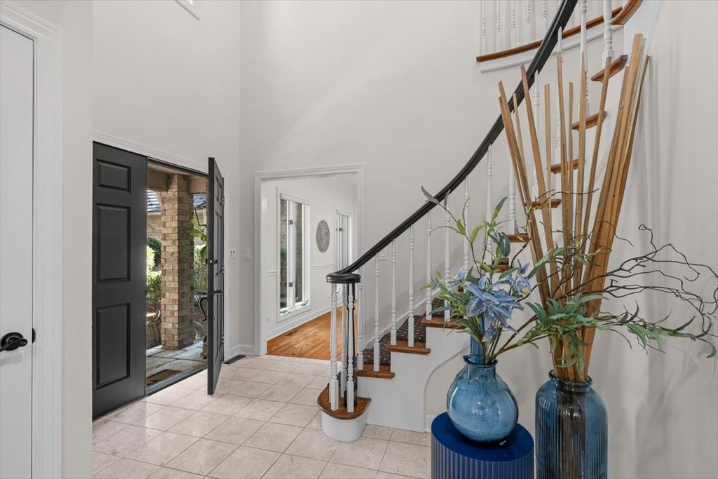Welcome to this beautifully updated 4-bedroom, 4.1-bath home in sought-after Herons Landing, set on a private 1.25-acre wooded lot backing to conservancy. Enjoy a terrific floor plan with generous room sizes and hardwood floors throughout the first and second levels. The renovated kitchen with white cabinetry and stainless steel appliances opens seamlessly to the dramatic family room with soaring ceilings and a striking floor-to-ceiling stone fireplace. Upstairs offers a large bonus room ideal for work or play, four spacious bedrooms, including a serene primary suite with a beautiful, lux remodeled bath. All bathrooms have been stylishly updated with modern fixtures. The finished lower level provides flexible living spaces. Major updates include brand new Davinci roof, HVAC, water heaters, appliances and extensive professional landscaping. Residents enjoy city water, public sewers, and top-rated District 96 schools and Stevenson High School. A true must-see! Showings will start November 1st.