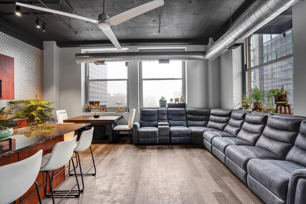 Experience luxury loft living reimagined in this stunning Belgravia built southwest corner unit, masterfully renovated with ultra-modern finishes throughout. This true two-bedroom, two-bathroom concrete loft showcases soaring 11' ceilings and floor-to-ceiling windows that flood the space with natural light. The thoughtfully designed 100 sq ft recessed terrace, accessible from both the living room and second bedroom, offers a seamless indoor-outdoor living experience. The recent designer renovation leaves no detail overlooked, featuring upgraded flooring throughout and a striking flat black loft ceiling that adds dramatic architectural interest. Remote controlled high-end smart shades can black out the main living space, or filter light into the bedroom (90%) or shade the upgraded stacked laundry closet. The chef's kitchen impresses with full-wall brushed metal backsplash, oversized cabinets, and upgraded high end black appliances. Granite counter tops and a generously sized granite breakfast bar create the perfect spot for casual dining or entertaining. The primary suite epitomizes modern luxury with its fully digital dedicated shower system complete with a high flow, high pressure magnetic mounted wand showerhead, selectable body sprayers, customizable via app control and a state-of-the-art digital automated no-touch bidet toilet. The ensuite bathroom also features a separate tub, double vanity, and two spacious closets, one walk-in with custom organization. The second bathroom has been elevated with a massive integrated LED heated mirror. The open-concept living area is anchored by a new over-sized remote controlled stainless steel smart fan while upgraded high CRI spotlights in kitchen are also remote controllable. Owner can include a recently installed 98" wall-mounted TV, creating an impressive entertainment space. The split-bedroom floor plan ensures privacy, while abundant closet space throughout provides plenty of storage solutions. This premiere corner unit comes with a separate storage cage and access to the building's outstanding amenities, including the signature "Q Room" - an 11,000 sq ft entertainment paradise featuring a bowling alley, fitness center, bar, lounge, movie theater, and game tables. Additional building amenities include a sun deck with gas grills, 24-hour door staff, a bike room, and professional onsite management. Utilities such as gas, water, snow removal, included in reasonable $758 monthly assessment (electric, cable, internet not included). Building is well managed with 1M-2M in reserves even after funding an active corridor remodel with new paint, carpet and lighting already completed on the upper floors. Within the coveted Skinner Elementary School zone, this home offers unparalleled access to Chicago's best. Steps from Union Station and offering easy access to I-90/94, the location provides seamless connectivity to the Loop, West Loop, Fulton Market, and Restaurant Row. World-class dining, shopping, and entertainment are all within walking distance, including Whole Foods, Mariano's, and the vibrant Randolph Street corridor. For the discerning buyer, a highly desirable corner parking space in the heated garage can be included for an additional $25,000 (+$60 monthly assessment), with dedicated EV charging expected to be addable to the spot in 2025/2026. This thoughtfully updated residence represents the perfect blend of sophisticated design, modern convenience, and prime location in one of Chicago's most sought-after buildings.