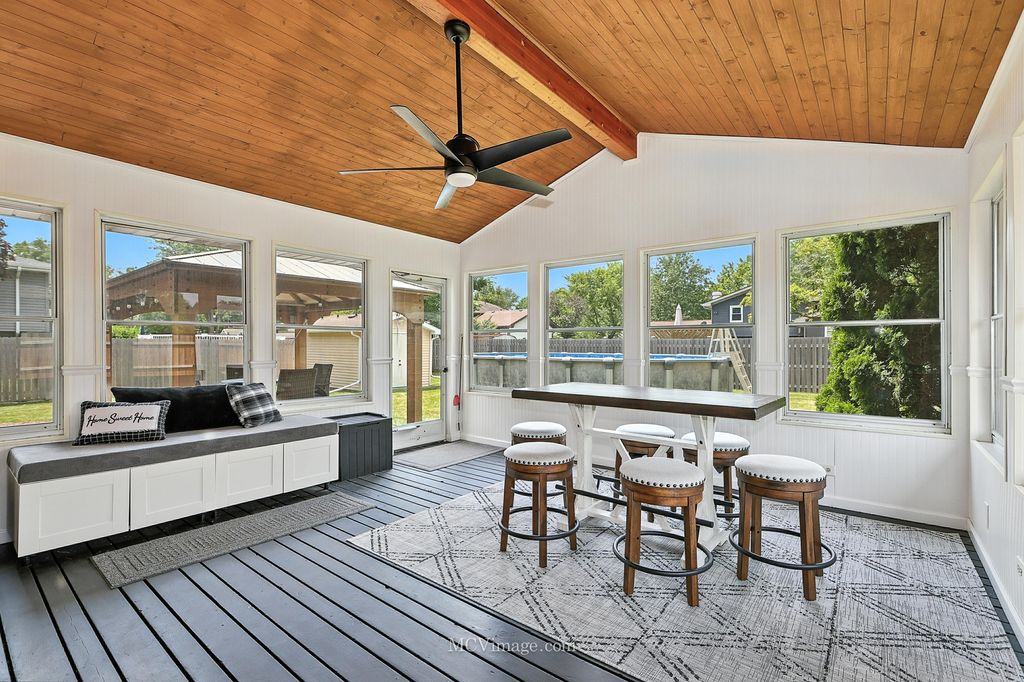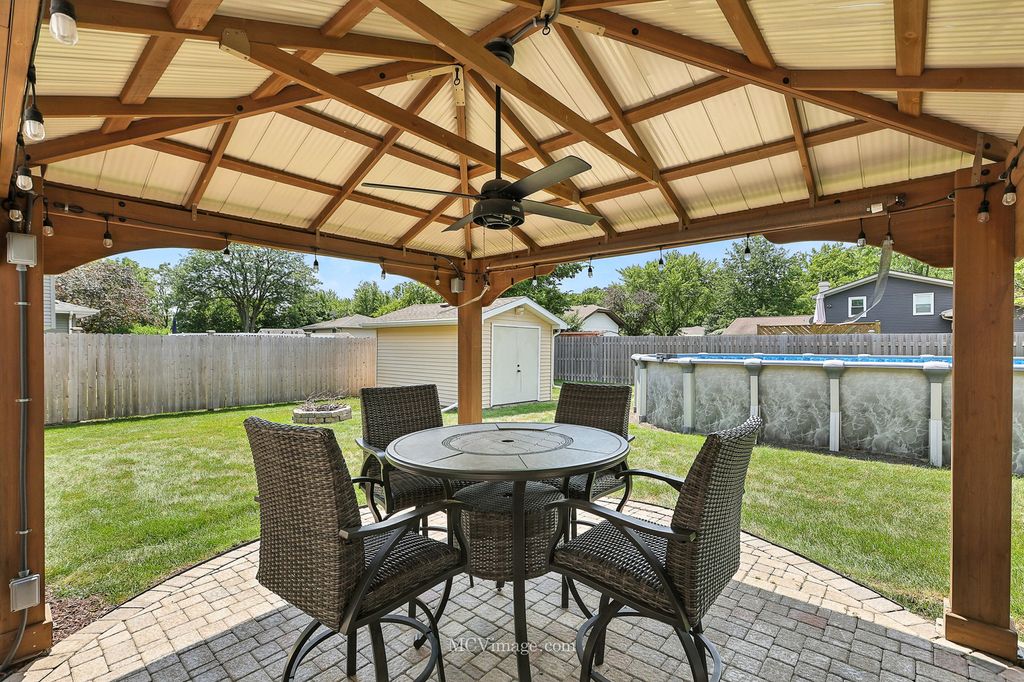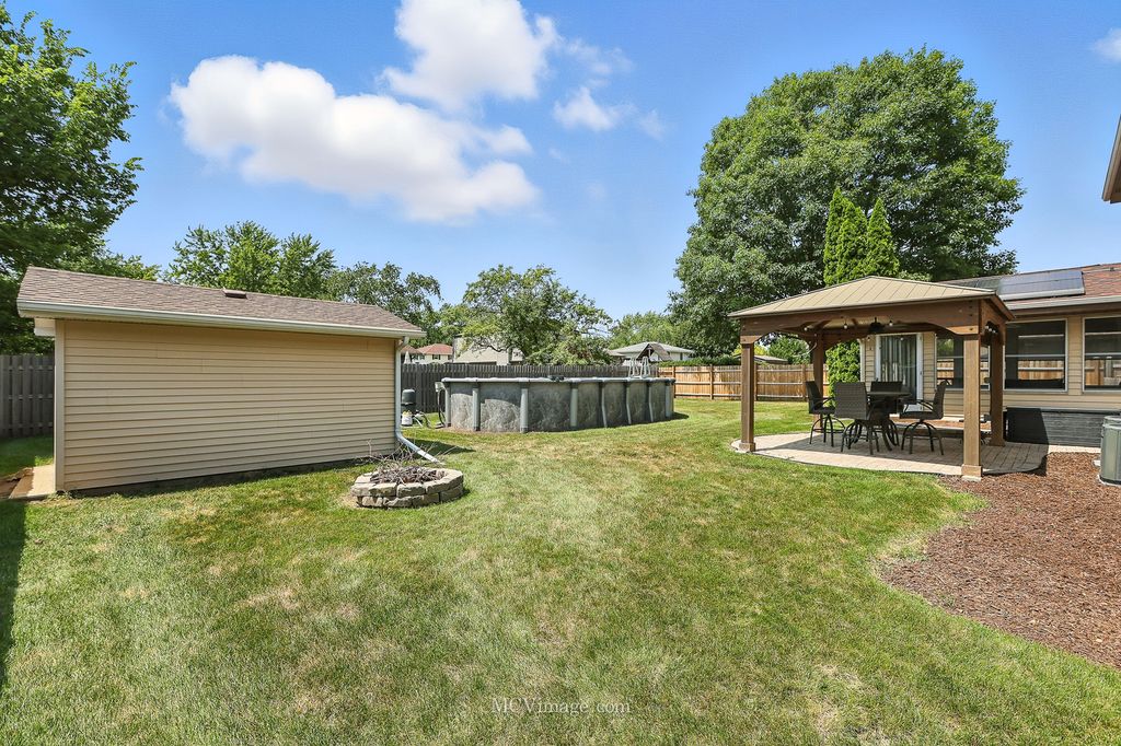 This beautifully maintained 5-bedroom, (4 bedrooms upstairs and one in the basement) 2-story home offers an inviting layout. The first floor features a spacious living room and dining room with new flooring, an eat-in kitchen equipped with stainless steel appliances, island and pantry (has washer and dryer hoop up), and a family room with built-in shelving and a cozy fireplace. This area leads to a 15x16 three-season room, perfect for relaxation. Upstairs, all four bedrooms are equipped with ceiling fans, hardwood floors (2 years new), and walk-in closets, while 2.1 bathrooms have been tastefully updated. The finished basement includes a recreation room, an additional bedroom, and ample storage space. The yard is a homeowner's dream, fully fenced with a dedicated dog run, a new pool, and a shed complete with a cement floor and electricity. It also features a 14x17 paver patio and gazebo with electric and ceiling fan, ideal for outdoor gatherings. Recent updates include a new roof (2021), solar panels (2022), and zoned heating and air with two new AC units (2021). The updated electrical panel was installed in 2022, water softener and reverse osmosis. Smart features enhance convenience, including smart light switches, a video doorbell, a battery backup system for the sump pump, and a Nest thermostat with fire and CO2 detectors. This home is not just a place to live; it's a modern sanctuary filled with thoughtful details!