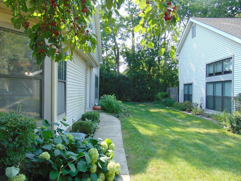 Welcome to this stunning and rarely available end-unit townhome, perfectly situated in a highly desirable community. Thoughtfully designed for comfort and style, this home features a hard-to-find first-floor primary suite complete with a walk-in closet and luxurious marble bath with a relaxing jacuzzi tub. The bright and spacious kitchen eat in kitchen is a true standout, boasting marble countertops, a center island, built-in hutch and cathedral ceilings with skylights. The inviting living room offers soaring ceilings, additional skylights, a cozy gas fireplace, and direct access to a private patio-ideal for relaxing or entertaining. Upstairs, you'll find a second bedroom, full bath, and an open loft area that overlooks the main level-perfect for a home office, reading nook, or guest lounge. The beautifully finished lower level adds even more living space with a large recreation room, wet bar, additional bedroom, and full bath-perfect for guests or extended family. Nestled in a serene, wooded setting with a private backyard, this home feels like a peaceful retreat while being just minutes from everything. Add in a friendly neighborhood and convenient location, and you've found a truly exceptional place to call home.