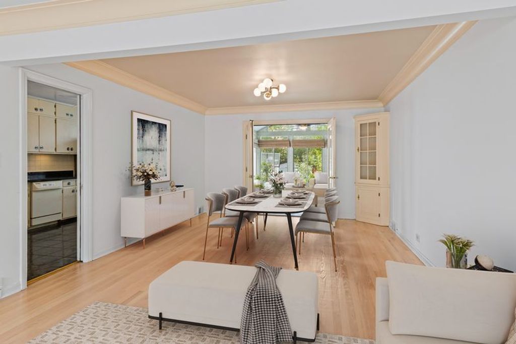 Welcome home to this delightful 3-bedroom residence nestled on a serene, tree-lined side street. The main level boasts a spacious open-concept living and dining area, perfect for both relaxing and entertaining. French doors open into a cozy family room that overlooks the private backyard, creating a seamless indoor-outdoor flow. A convenient half bath completes the main floor. Upstairs, you'll find three generously sized bedrooms, including a king-sized primary suite with a large, custom walk-in closet designed for optimal storage and style. The finished lower level offers a unique retro-style family room complete with a built-in bar-ideal for hosting game nights, movie marathons, or weekend gatherings. There is also a half bath conveniently located on this level as well. This home with its spacious rooms and functional floorplan is ready to be taken to the next level at a great price point! Don't miss your chance to make it yours!