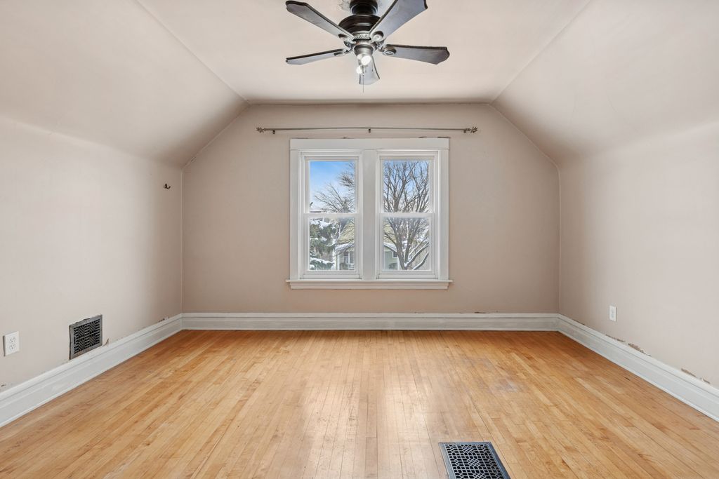 Welcome to a solidly built home filled with charm, character, and room to make it your own. This 3-bedroom, 1-bath home features refinished hardwood floors in the living and dining rooms, a bright and spacious living room, and a separate dining room perfect for everyday meals or gatherings. The kitchen has been updated since the previous sale, and the large, freshly repainted front porch offers a wonderful place to relax and enjoy the neighborhood. The main floor includes one bedroom, with two additional bedrooms upstairs. The second level also features a generous unfinished area that offers exciting potential for future expansion, ideal for creating extra living space, a home office, playroom, or a large primary suite. The basement has been drywalled and includes a built-in entertainment console. All you need is flooring to complete the space! The interior would benefit from a paint refresh, allowing the next owner the opportunity to add their personal touch. While the property does not currently have a garage, there is ample space to build one. The private, fenced yard provides a great area for play, pets, or entertaining. A wonderful opportunity to own a home near Six Corners with great bones, classic details, and plenty of possibilities to tailor it to your needs and style.