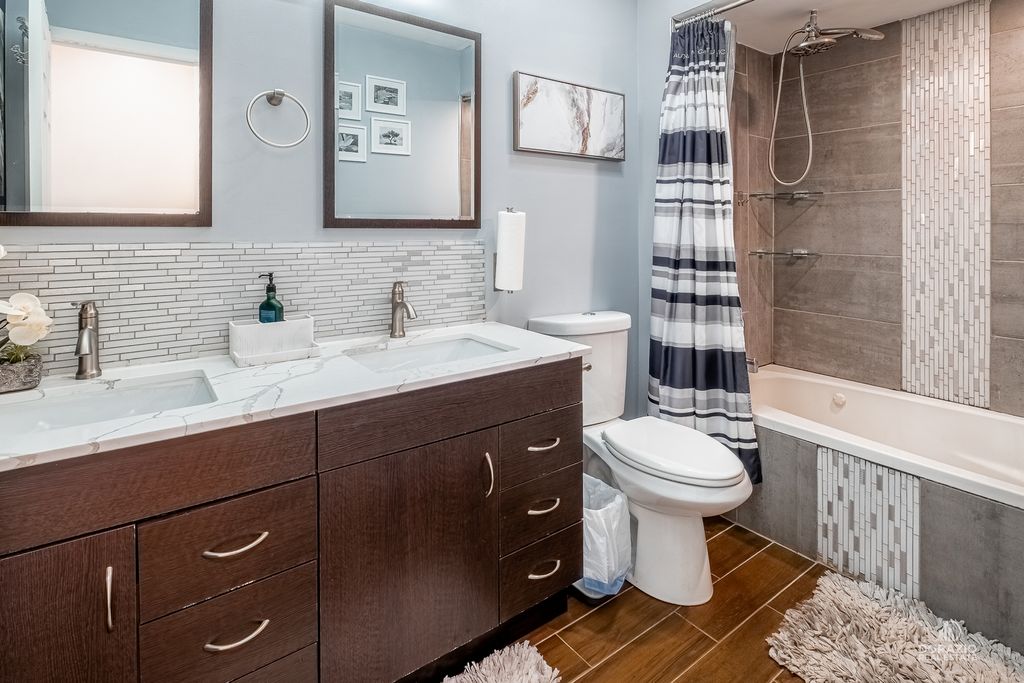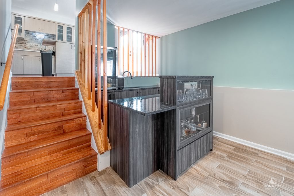 Welcome to this beautifully updated 3-bedroom, 3-bath split-level home, thoughtfully designed for both comfort and entertaining. Recently refreshed with modern, stylish finishes, this home features hardwood flooring throughout, custom built-in shelving in the foyer, and a striking media wall in the living room. The kitchen is sleek and functional, offering quartz countertops, an island with seating, and direct access to the yard through double doors with built-in blinds. All three bedrooms are located on the upper level, including a spacious primary suite with a private en suite bath. Downstairs, the expansive L-shaped family room is perfect for gatherings, complete with a wet bar, wood-burning fireplace, and full bathroom-ideal for guests. The lower level also includes a laundry room with newer Maytag appliances and a secondary exit for added convenience. Outside, enjoy a low-maintenance backyard with a firepit and dedicated lounge space. The extra-long driveway includes several parking spots in addition to the finished 2-car garage with shelving and drywall. Smart home features include fiber-optic internet, smart lighting, a smart thermostat, Ring doorbell, and ADT camera system. Recent updates: custom blinds throughout, sump pump (2024), washer/dryer (2024), dishwasher (2023), garage door opener (2024), and fresh interior paint. Roof is 9 years old. Tucked at the end of a quiet cul-de-sac, this home blends modern style, convenience, and comfort-all in a peaceful setting.