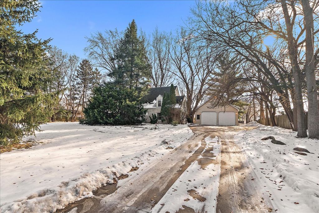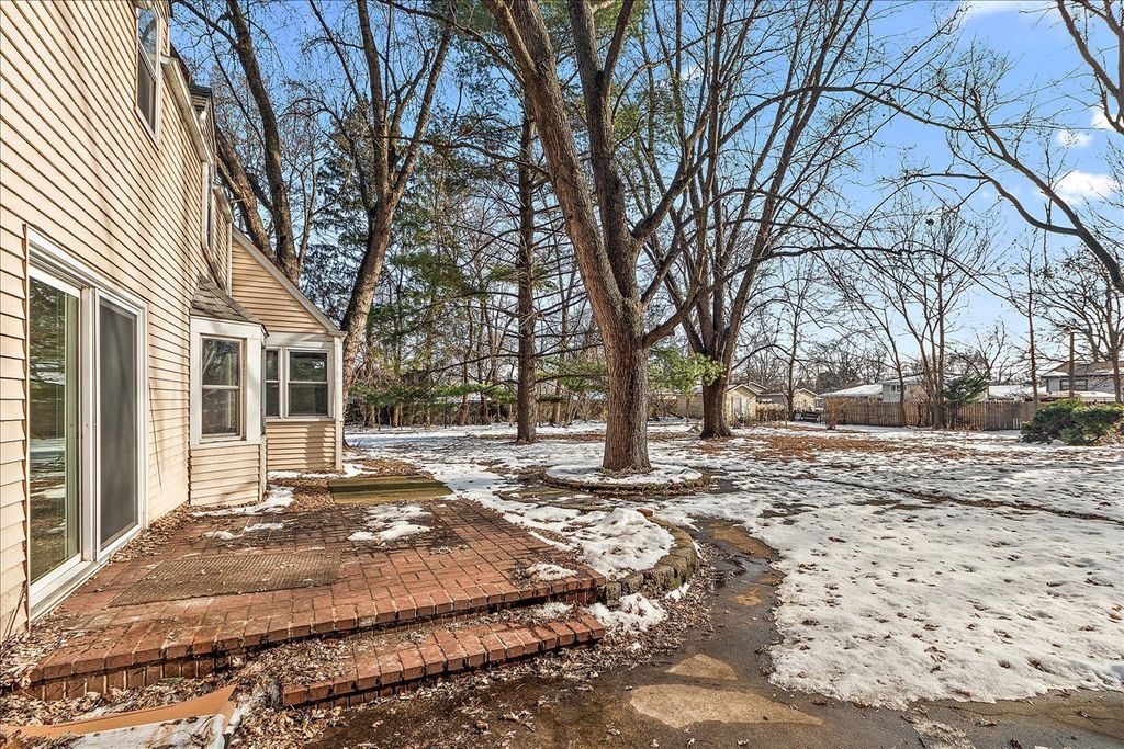 Welcome to this large stone Cape Cod on 1 acre! 3 bedrooms upstairs, 1 on the main level (or could be an office) which currently has glass doors and built in bookshelves., 1 1/2 bathrooms. The yard is spectacular with mature trees, shed, and huge brick patio. Detached 4.5 car garage is heated with attic storage that could be finished! Kitchen has an eating area. The living room has a welcoming fireplace and has easy access to the 3 season room with hot tub(as is). The basement is unfinished with another fireplace. There is a separate shower in the laundry area and another room with a toilet. These are not included in the one and a half bathrooms listed. Furnace and AC - 2020, Water Heater - 2024, Overhead garage door - 2019, Slider - 2023 with a lifetime guarantee, New water softener. Leaf-guard on gutters. JOLIET TOWNSHIP, NEW LENOX SCHOOLS. Sold " as-is" Home needs TLC but great house and yard and in great school district. BRAND NEW carpeting in the home.