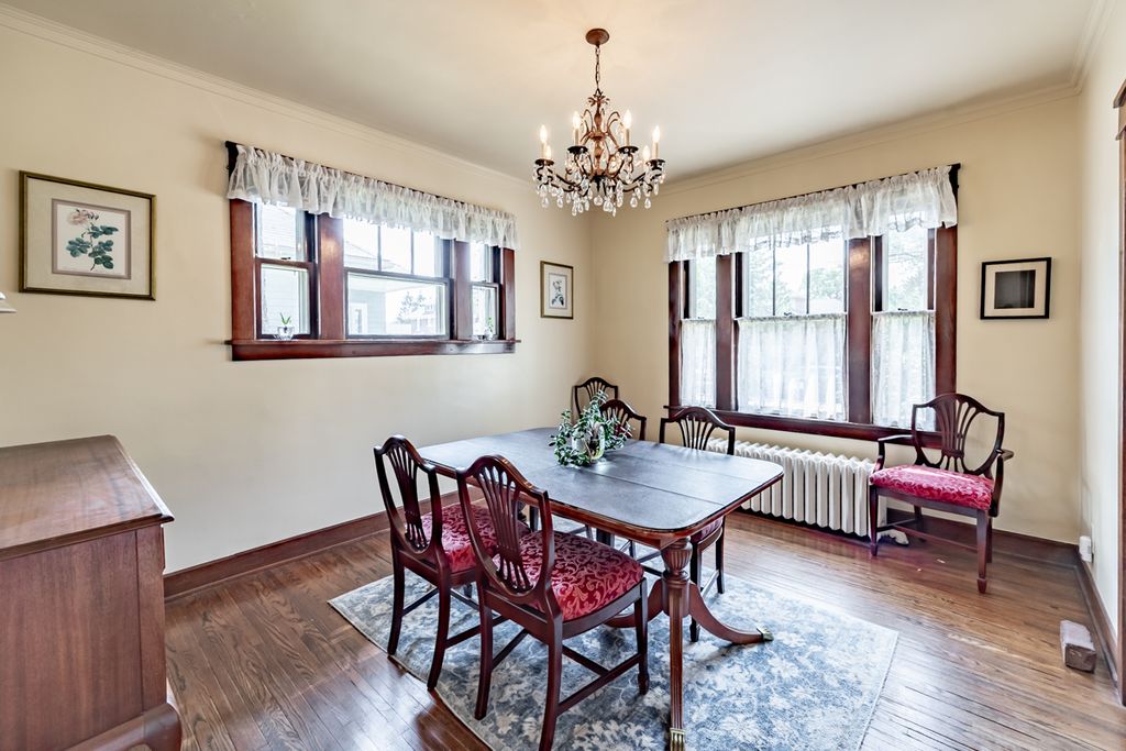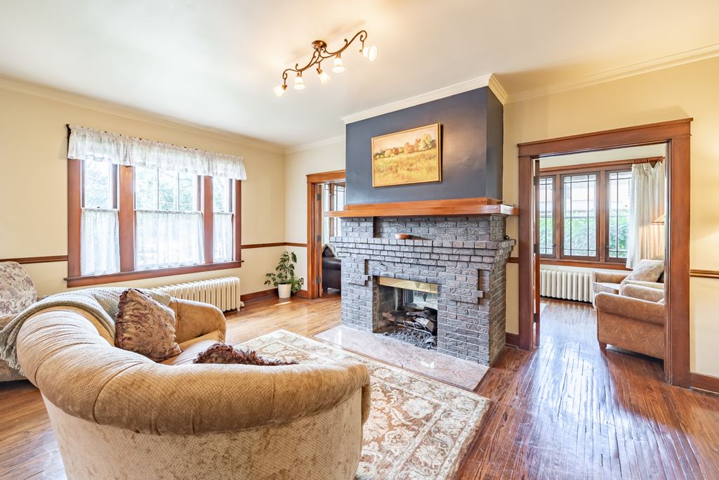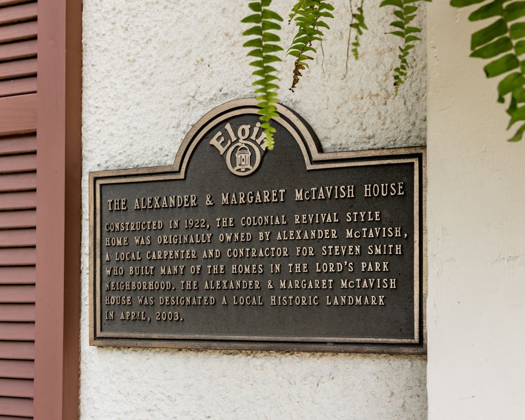 This beautifully maintained 1922 two-story Colonial Revival home boasts four bedrooms, 1.5 baths, two sunporches, and over 2,300 sq ft of inviting living space. This historic landmark gem is nestled in the quiet and pristine Lords Park neighborhood. Through the original oak front door you'll find Arts & Crafts elements that complement the Colonial Revival style of the house. There is an abundance of wood trim, French doors and windows, built-ins, and a staircase featuring a stunning large arched window at the landing. Beautiful hardwood floors are found throughout the home with oak on the main level and maple on the second level. A traditional see-through fireplace is located between the living room and family/sunroom. Two of the upstairs bedrooms connect to a cheery light-filled sun porch. The kitchen and bathrooms have been remodeled. The home has both a brick and Thero-coat stucco exterior, which minimizes maintenance and provides better insulation from the weather. A detached garage sits on a spacious, landscaped and fenced corner lot. The house is designated as a historic landmark in Elgin, and therefore is eligible for city grants for exterior improvements. Located a block from Lords Park, one can find a petting zoo, an historic pavilion, lagoons, waterpark, playgrounds, a museum, and majestic, mature oaks. Conveniently located for access to O'Hare airport and the city of Chicago via the tollway, Metra train, and bus line, all within a mile of the house. It's also within walking distance of downtown Elgin, with its restaurants, great recreation center, Hemmen's auditorium, the Fox River Trail, and award-winning library. This is your chance to own a piece of classic Lords Park Neighborhood charm. Do not miss this opportunity!