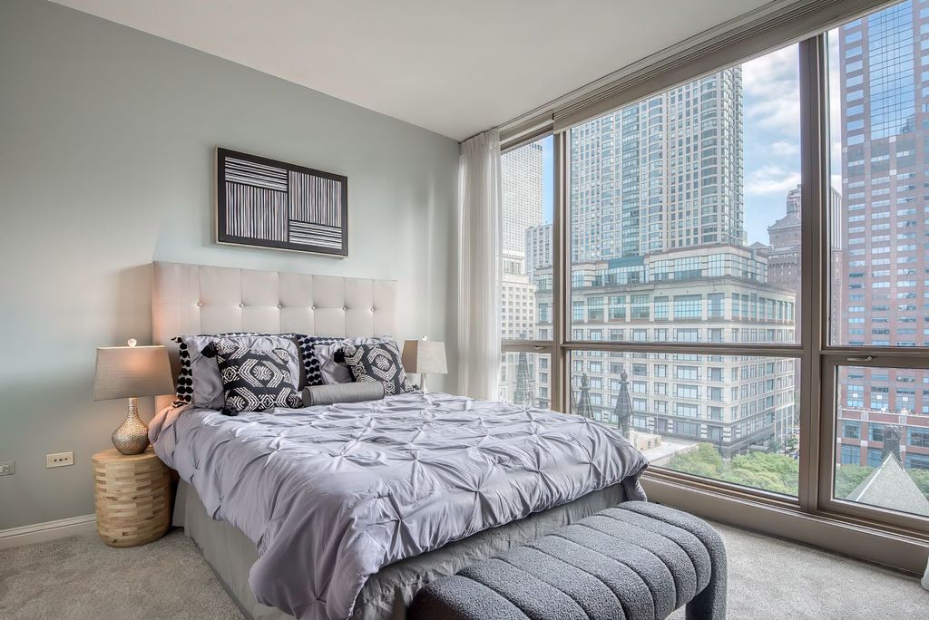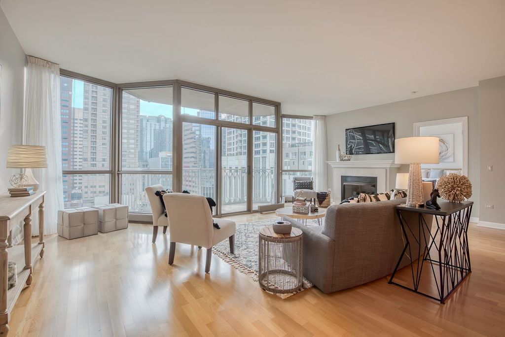 Experience refined city living in this prime tier, preferred split two bedroom, two bath layout at the renowned Pinnacle, one of Chicago's premier full service luxury buildings. Enjoy stunning east facing city views from the floor to ceiling window and from your large private balcony. This home features an expansive living room with a beautiful fireplace, a spacious dining room and a open-concept gourmet kitchen equipped with top of the line appliances, abundance of custom cabinets, granite countertops with room for stools. Hardwood floors throughout the main living area. The spacious primary suite is equipped with a luxurious en-suite bath, floor to ceiling windows and a custom walk in closet. The nice sized second bedroom and full bath add to the perfection of this unit. Additional highlights include full size side by side laundry and extra storage. The Pinnacle offers five star amenities including 24 hour door staff (the best in the city), state of the art fitness center, indoor pool and spa, theater and party rooms and an amazing dog run. Perfectly located in River North near Whole Foods, Trader Joe's, premier shopping and convenient transportation. Parking included in price. Original owner has meticulously maintained and updated this beautiful home.