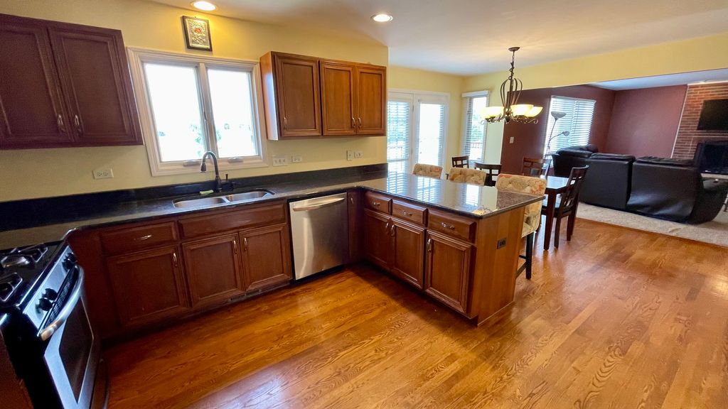 Beautiful home set in desirable Gooding's Grove of Homer Glen. 4 bedrooms, 3 1/2 baths, finished basement 3 CAR ATTACHED GARAGE! Great curb appeal with 22 x 5 front porch, Features a spacious kitchen with hardwood floors, all stainless steel appliances, cherry cabinets, and granite counter tops. Spacious family room with fireplace. Formal separate living room and dining room. Grand staircase with iron spindles leads you to second floor featuring a large master bedroom with walk in closet and trayed ceilings. Master bath with double sinks, separate shower and soaking tub. Additional upstairs bedrooms are of nice size. Additional living space in amazing full finished lookout basement with family room, 5th bedroom, office, and full bath! Convenient main level laundry room. Enjoy outdoor living on large newer maintenance free deck with extra storage underneath. Walk to shopping and restaurants.