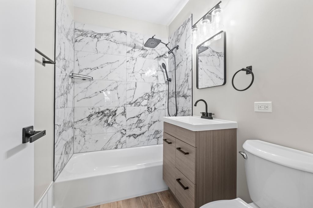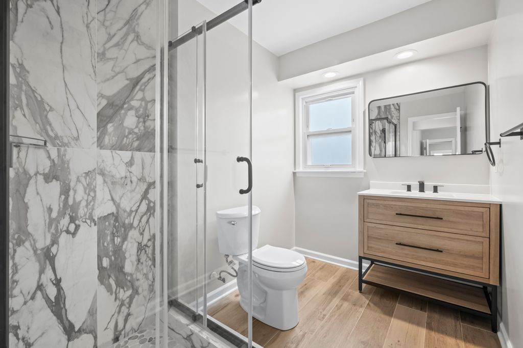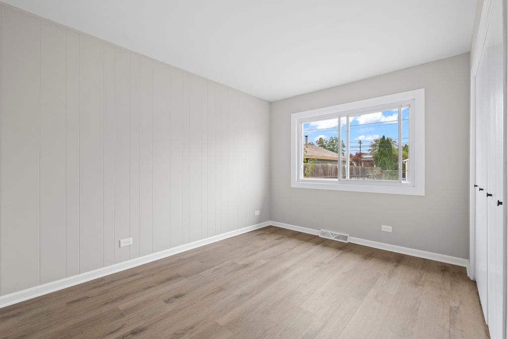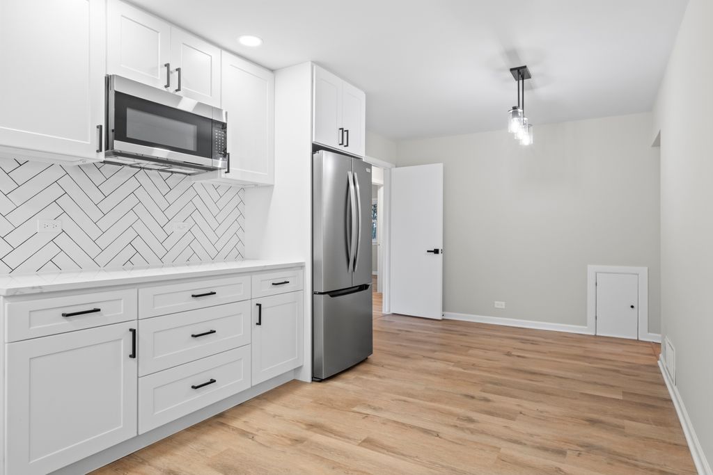 A fully remodeled and move-in ready ranch offering modern updates and a highly functional layout.This home features 4 bedrooms and 2 full bathrooms, all on the main level. The open-concept living room is filled with natural light from a huge bay window and anchored by a charming stone fireplace. The brand-new kitchen showcases quartz countertops, white shaker cabinets, stainless steel appliances, and a stylish backsplash, flowing seamlessly into the dining area. Both bathrooms have been completely renovated with designer finishes.The basement offers the best of both worlds - half is fully finished with a spacious recreation area and custom bar, while the other half provides a large utility and storage room.All new flooring and modern finishes across the entire home. Spacious backyard with patio, perfect for entertaining. Detached 2-car garage and extended driveway. Located in a desirable Des Plaines neighborhood, close to schools, shopping, dining, parks, and transportation, this home is completely renovated from top to bottom and ready for its new owners to move right in.