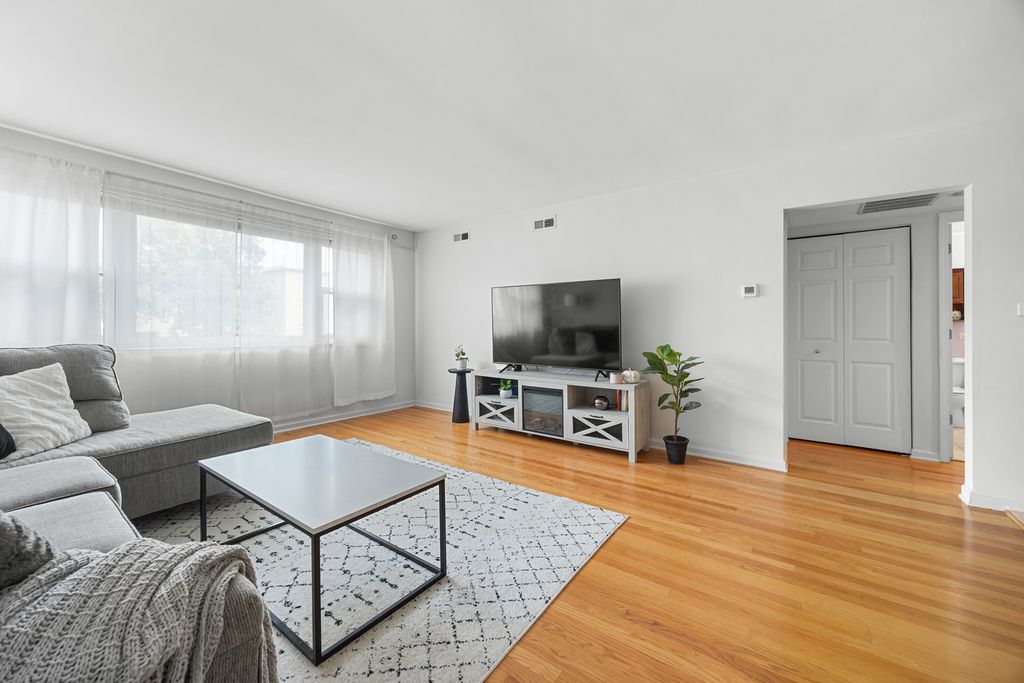 Spacious and bright first-floor 1-bedroom, 1-bath condo in a convenient Skokie location. The unit features a large living room with hardwood floors, a comfortable dining area, and a functional kitchen. Common laundry and a private storage area are located in the basement. An assigned parking space (#7). The building has no elevator. Rentals are permitted after three years of owner occupancy. Across from the Weber Center with fitness, skating, and a community golf course. Close to Old Orchard Shopping Center, restaurants, and expressways. Property to be sold in as-is condition.