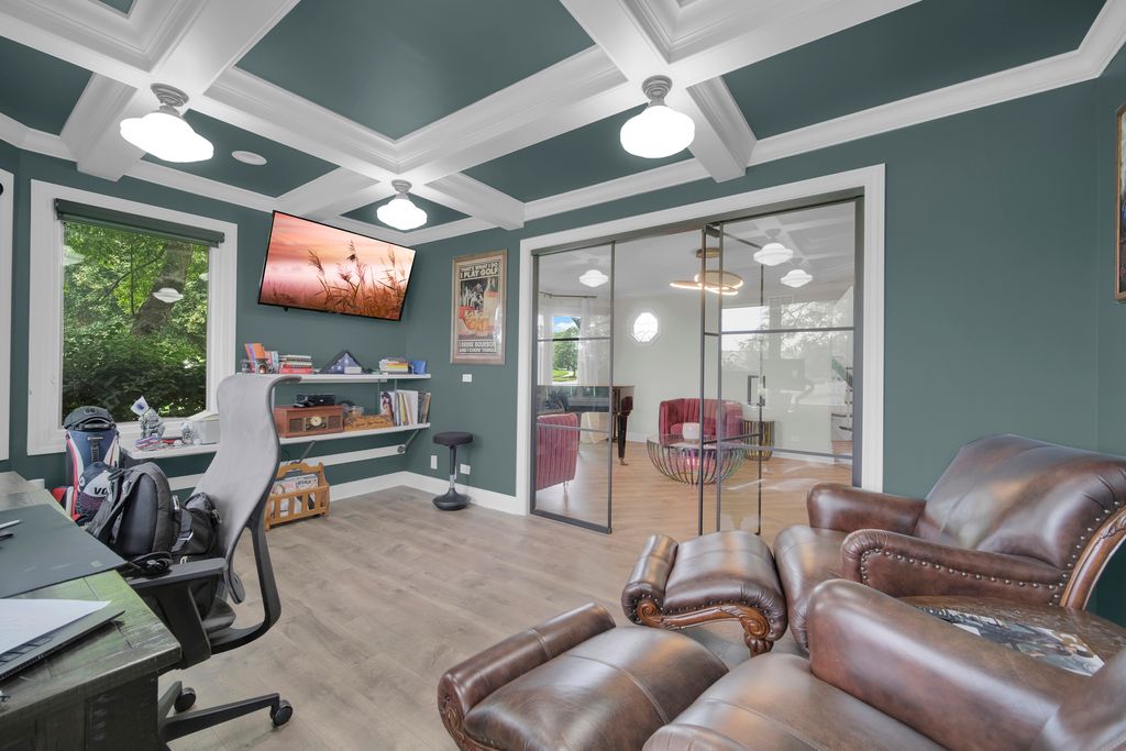 Nestled in the heart of White Eagle Club, this fully renovated custom home vibes modern-meets-classic with espresso hardwood floors and bold black-trimmed doors that make a statement the second you walk in; chill in the cozy front flex, lounge-style living room or level up your WFH setup in a sleek office or sunroom with custom built-ins and sparkle-tile accents , then step out to the spacious deck for sunrise coffee or sunset hangs over the golf course. Designed for entertaining, the formal dining room flows into a high-end kitchen with stone counters, clean white cabinetry, a hidden walk-in pantry, premium appliances, and a stylish butler's pantry with sink for extra flex. The two-story family room brings drama with oversized windows, a modern fireplace, and nonstop natural light, while even the laundry and mudroom serve looks with custom tile and smart design. Upstairs, the hotel-like primary suite is a legit retreat-vaulted ceilings, an oversized walk-in closet, and a spa-inspired en-suite with luxe stone finishes-plus three more bedrooms and two full baths, a private balcony with golf views, and a fully updated, move-in-ready vibe in one of Naperville's most coveted communities.