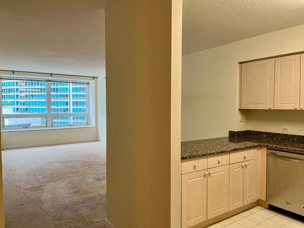 Live in the heart of Streeterville and walk to everything! Spacious one bedroom unit with northeast city views includes a large living / dining room and open kitchen with granite breakfast bar, stainless steel appliances, and plenty of cabinet space and counter space for your cooking needs. Enjoy the large stone window seats for plants or seating areas. Large bright bedroom offers a walk-in closet and allows for a full suite of furniture and place for a desk. Full-service building features Exercise Room, Door Staff, Entertainment Suite and Lush Sundeck. Convenient location, steps to Target, Walgreen's, Movie Theaters, Whole Food and the Lake Front. Well Managed building with over $4.6M in reserves. Rental Parking Available for $310/mo. Welcome home!