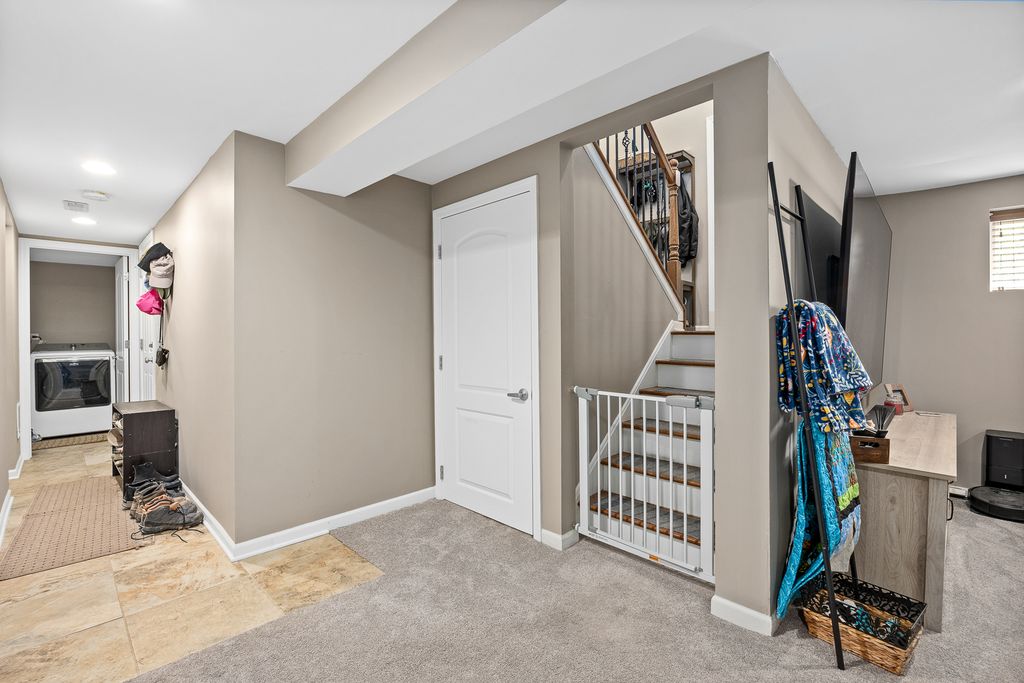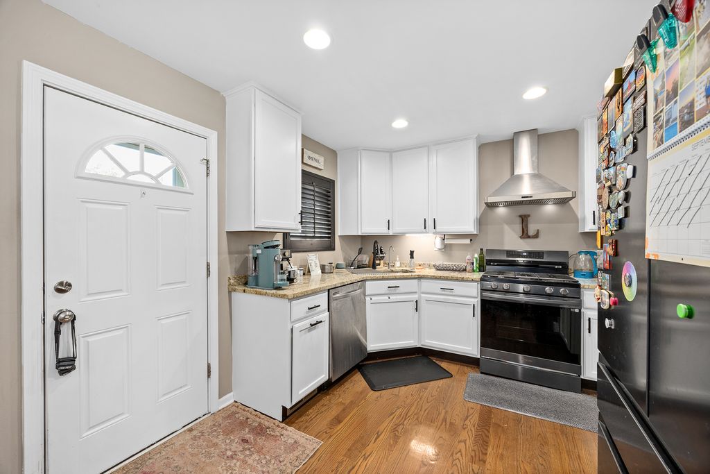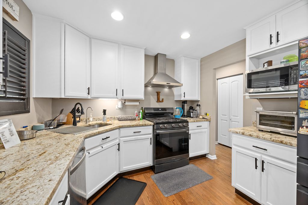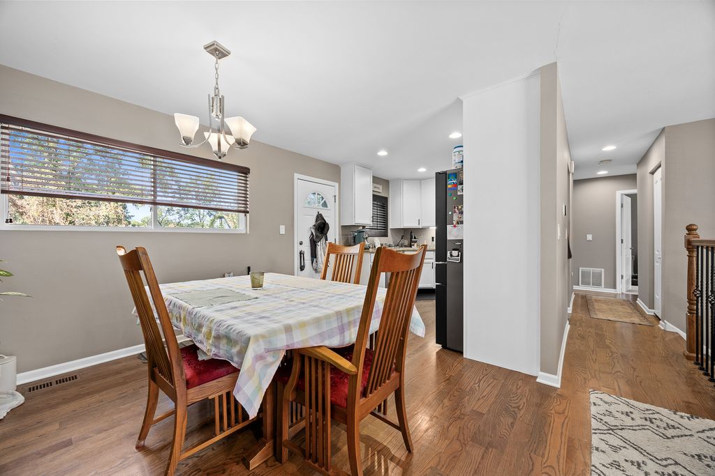 Beautiful updated Tri-level home on a quiet street! Main level includes spacious living and dining room plus kitchen have hardwood flooring; updated kitchen has 42" cabinets, granite countertops, SS appliances, patio door & can lighting; main bedroom has newer carpet flooring, ceiling fan w light & closet organizer; 2 additional nicely sized bedrooms with carpet and ceiling fans; updated main floor bath with tile floors and shower; lower level includes family room with can lighting, full bath, laundry room including washer & dryer; 2 car garage. Large deck overlooks nature area and huge fully fenced yard. Conveniently located near school, shopping and major roadways!