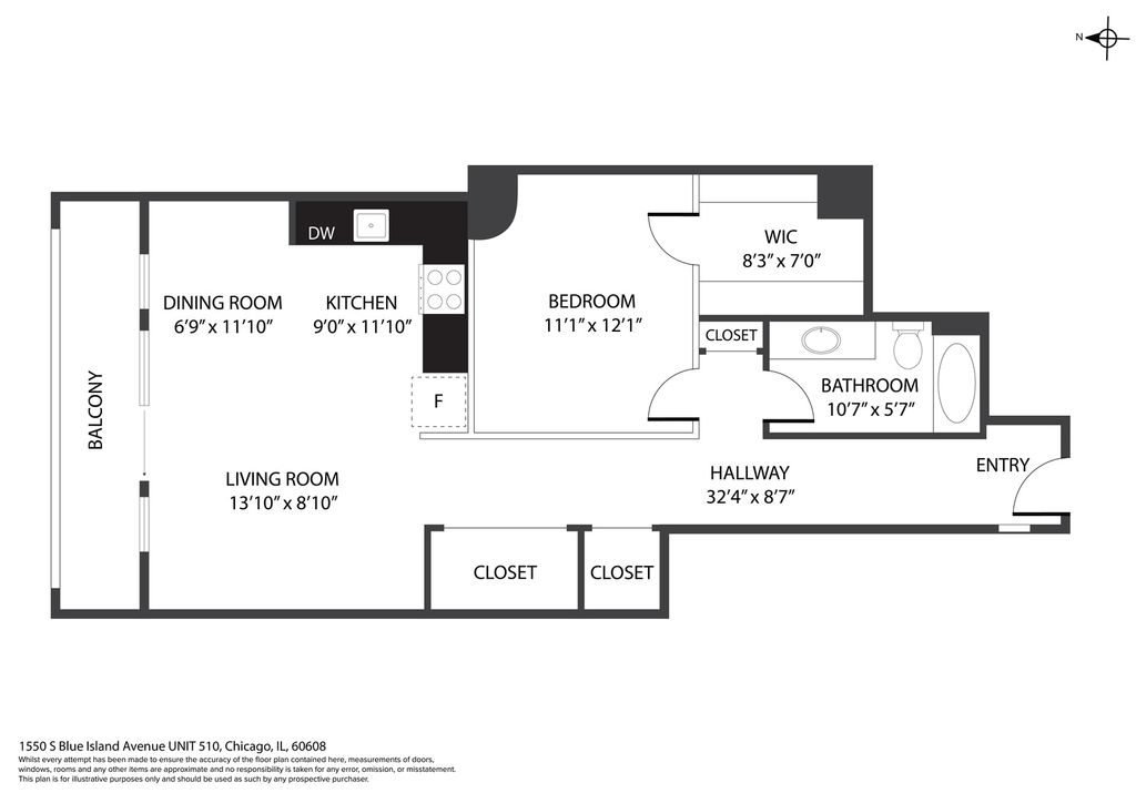 Welcome home to this beautifully maintained and quaint 1 bedroom condo in the heart of Pilsen. As one of the largest 1 bedroom floorplans, this move in ready home boasts updated flooring, paint, an updated bathroom, and a stunning city skyline view. Just imagine sipping coffee or drinks on your balcony on a beautiful Chicago summer day Tall ceilings and large windows let the light flood in. In-unit washer and dryer are a bonus and an organized walk-in closet in your bedroom, a unique find in a 1 bedroom. Additional closet space in the hallway cant be beat. 1 parking space and storage cage are included in the price. Take in the energy of the community and the Historic University Station- you will feel right at home. Wonderful door staff and amenities include a party room, 2 dog runs, Gym, Bike room etc., close to UIC, Rush, Medical District, Pilsen, Costco, Taylor Street and Pink Line.