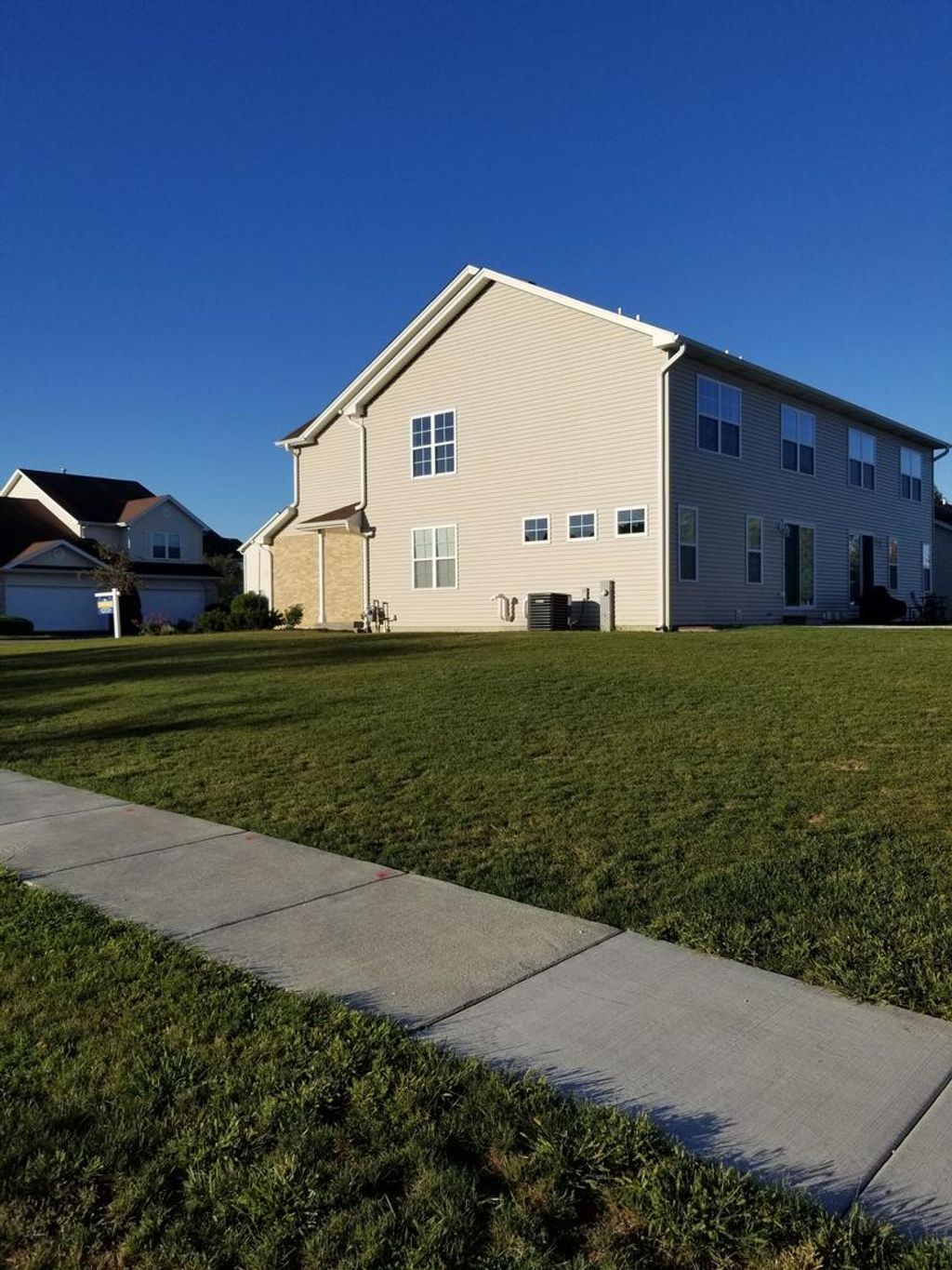 New construction 2 story duplex townhome, modern 2 panel doors and trim, modern style fixtures and hardware, 3 large bedrooms, walk-in closet, 2 1/2 bath, oversized soaking tub, double vanity, full height soft close cabinets, quartz tops, stainless steel appliances, hardwood floors throughout, full basement, outdoor patio, high efficiency everything and all new.